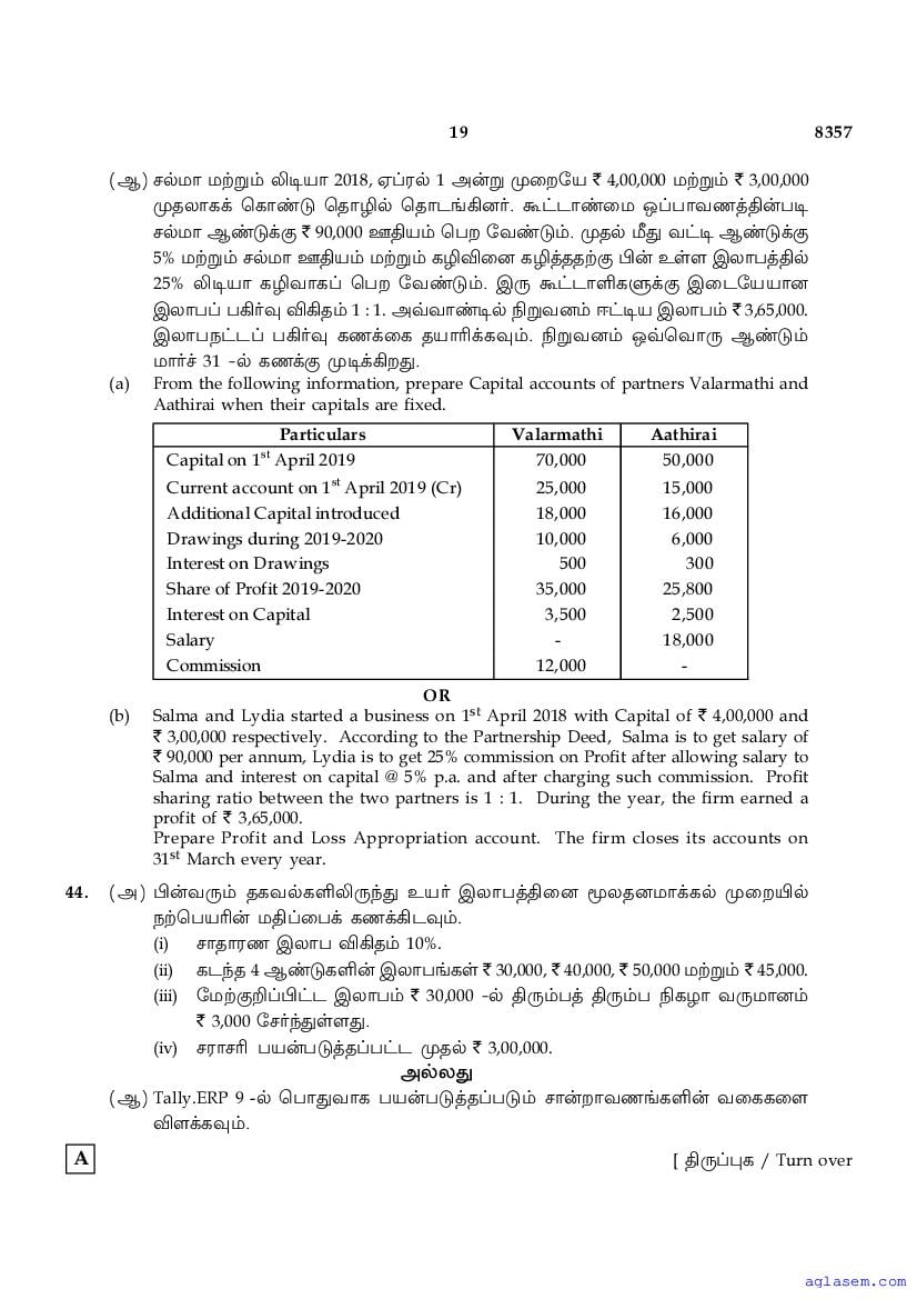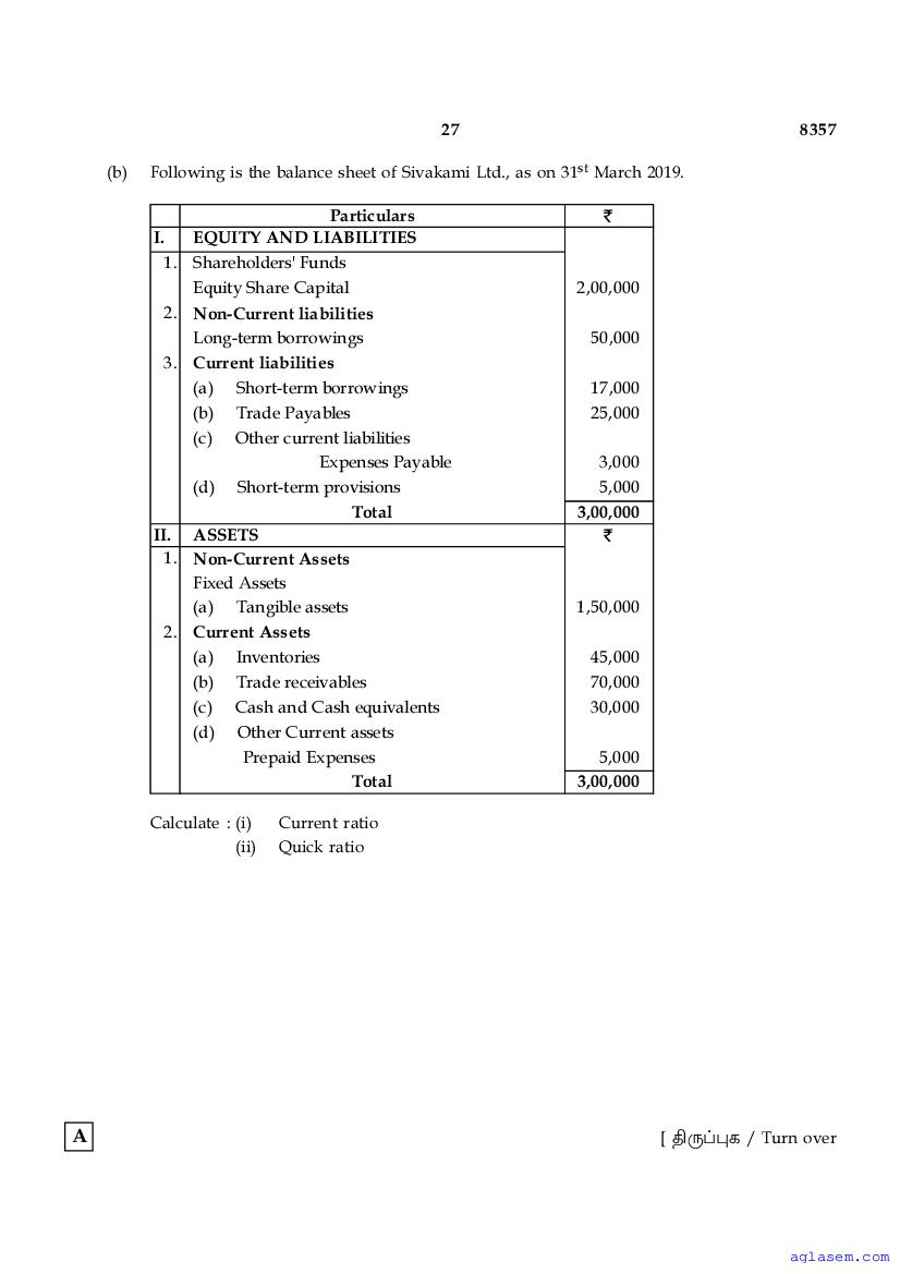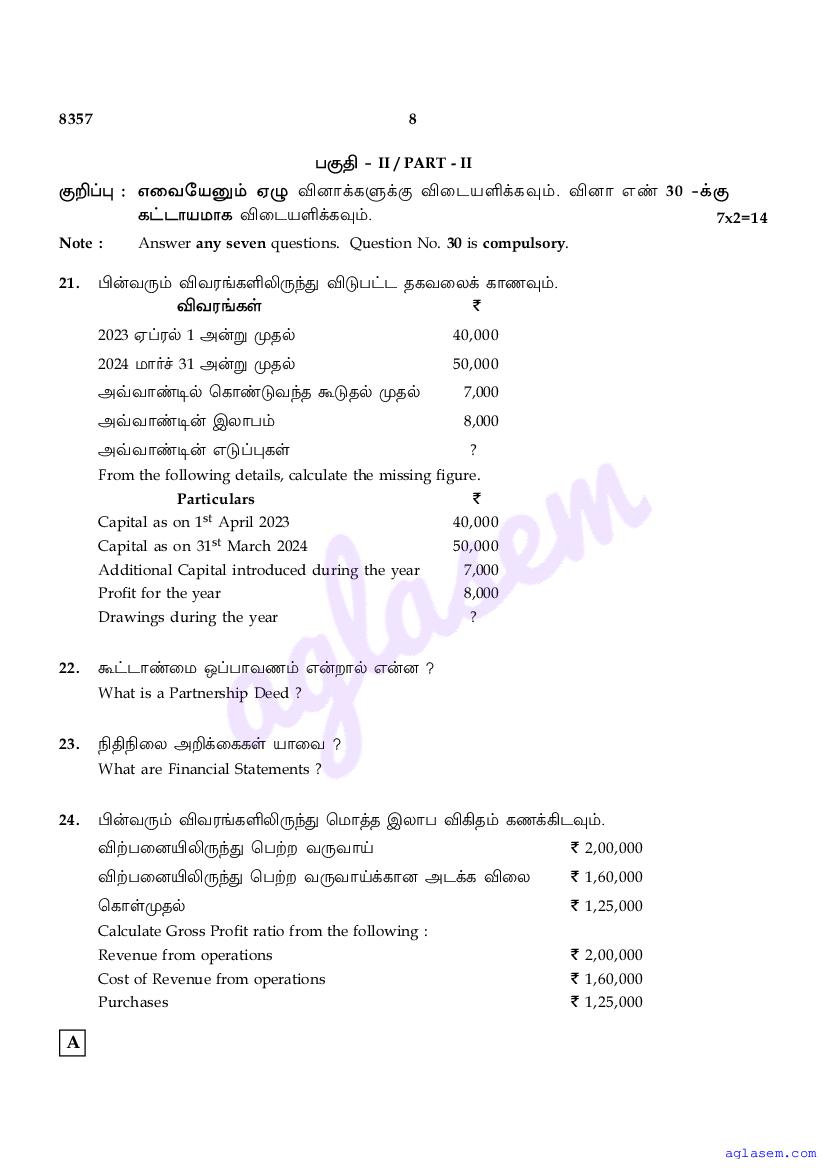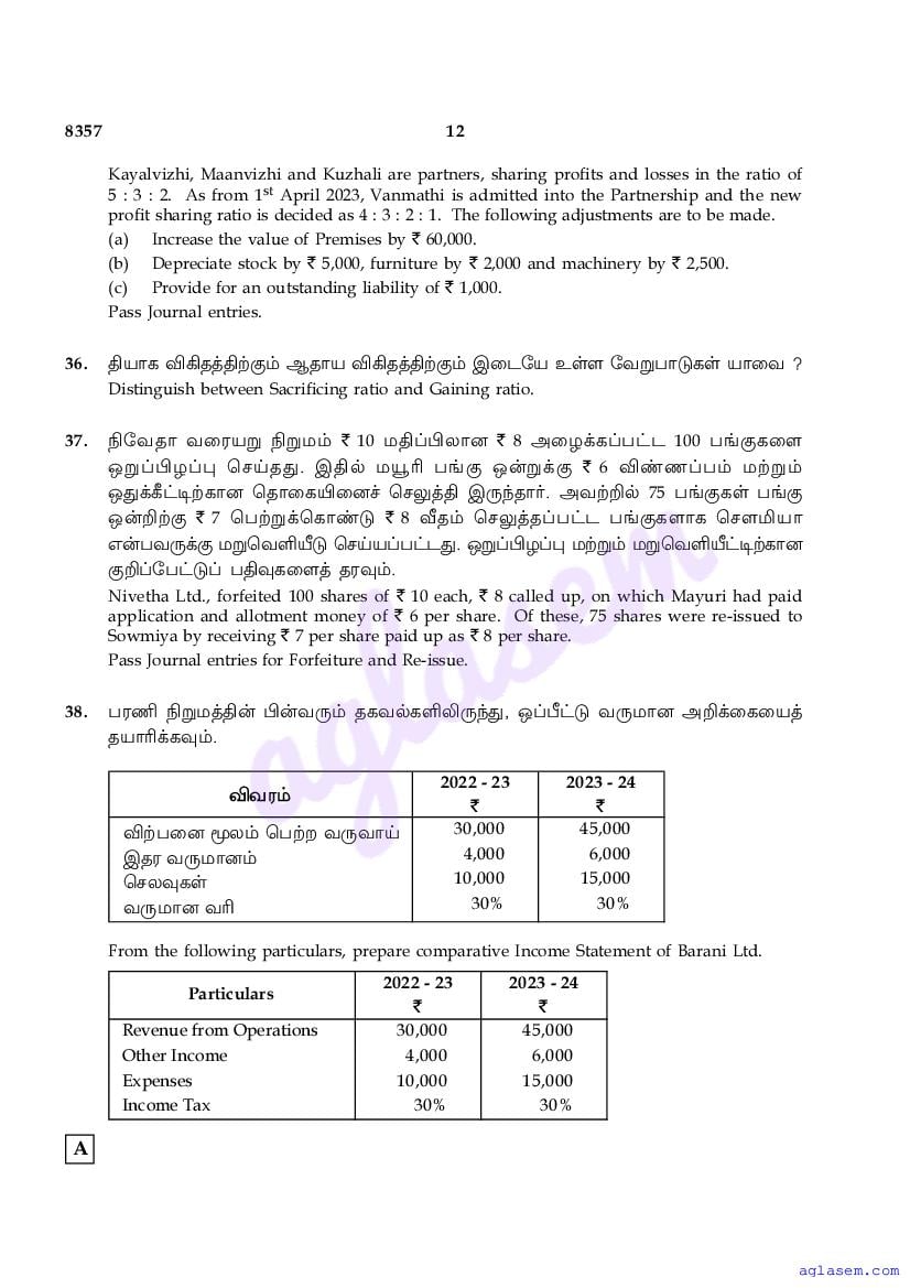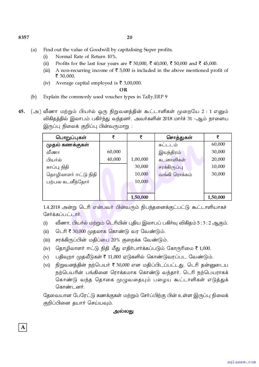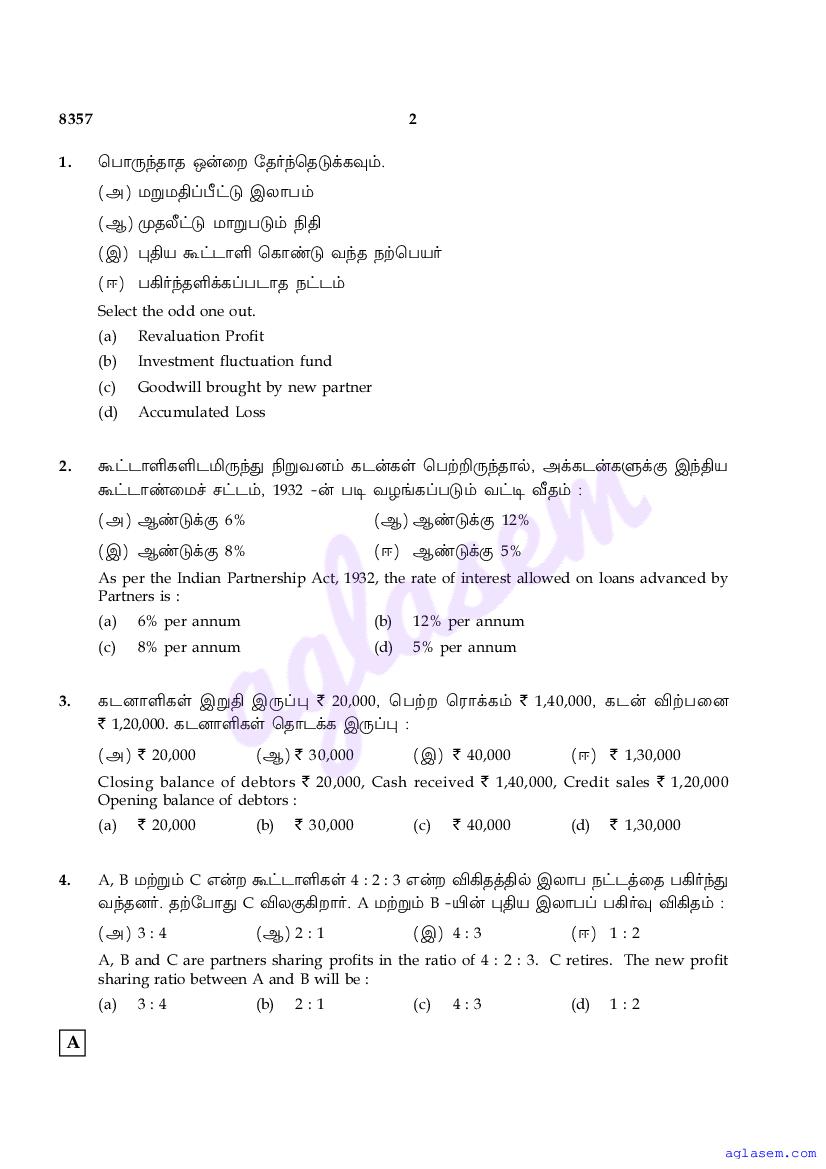 The Tamil Nadu Board Model Paper for class 12 Accountancy is as follows.