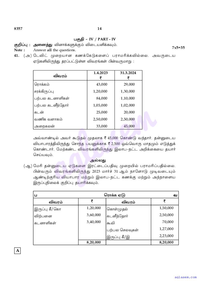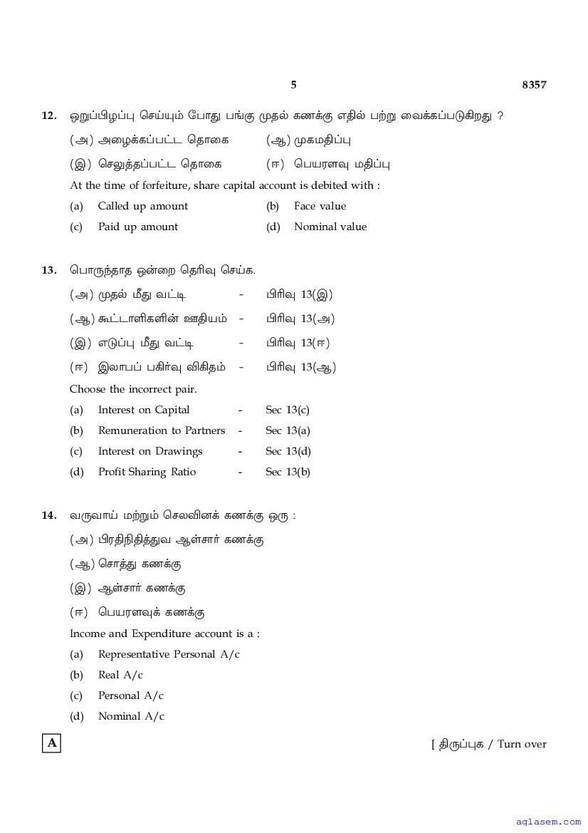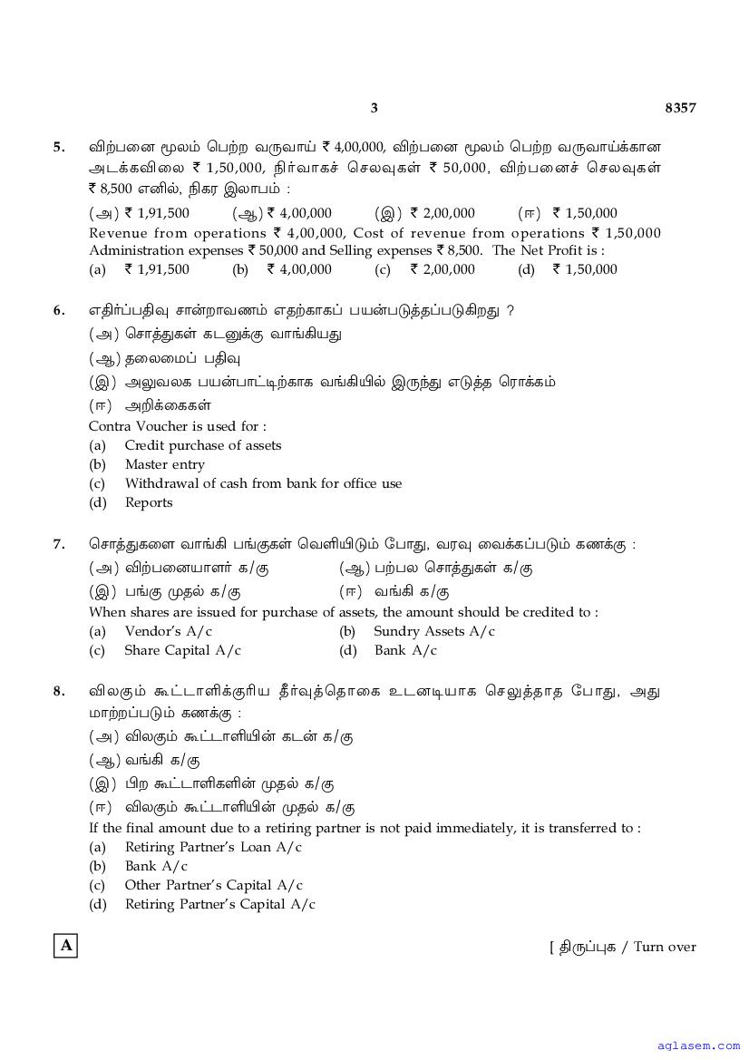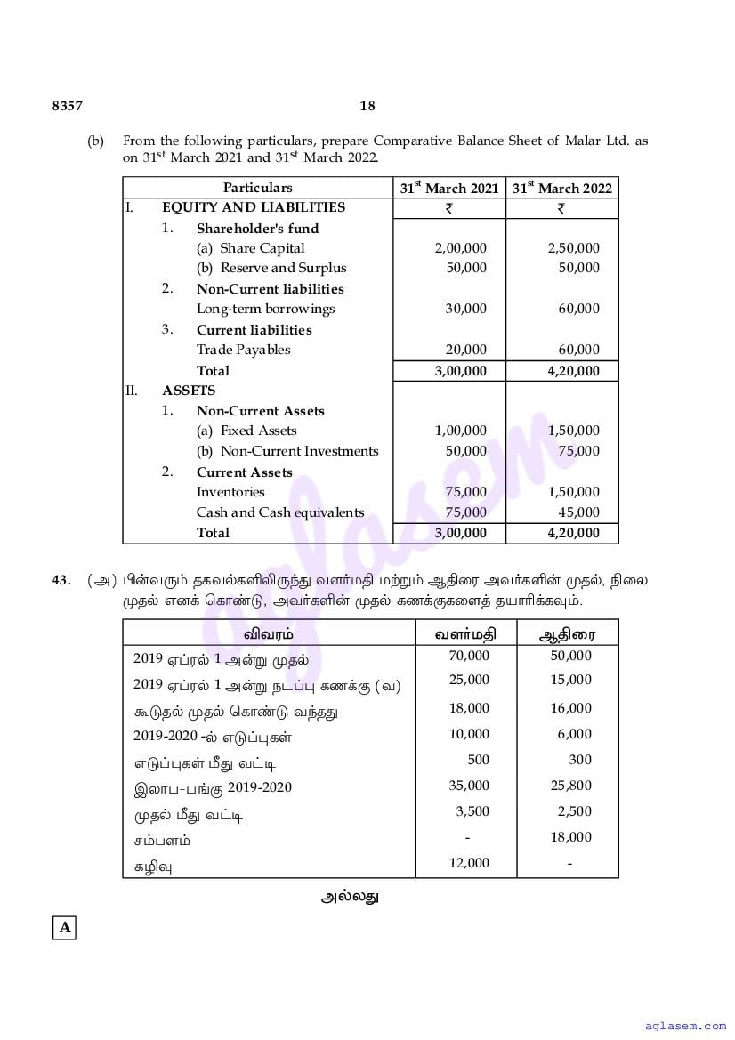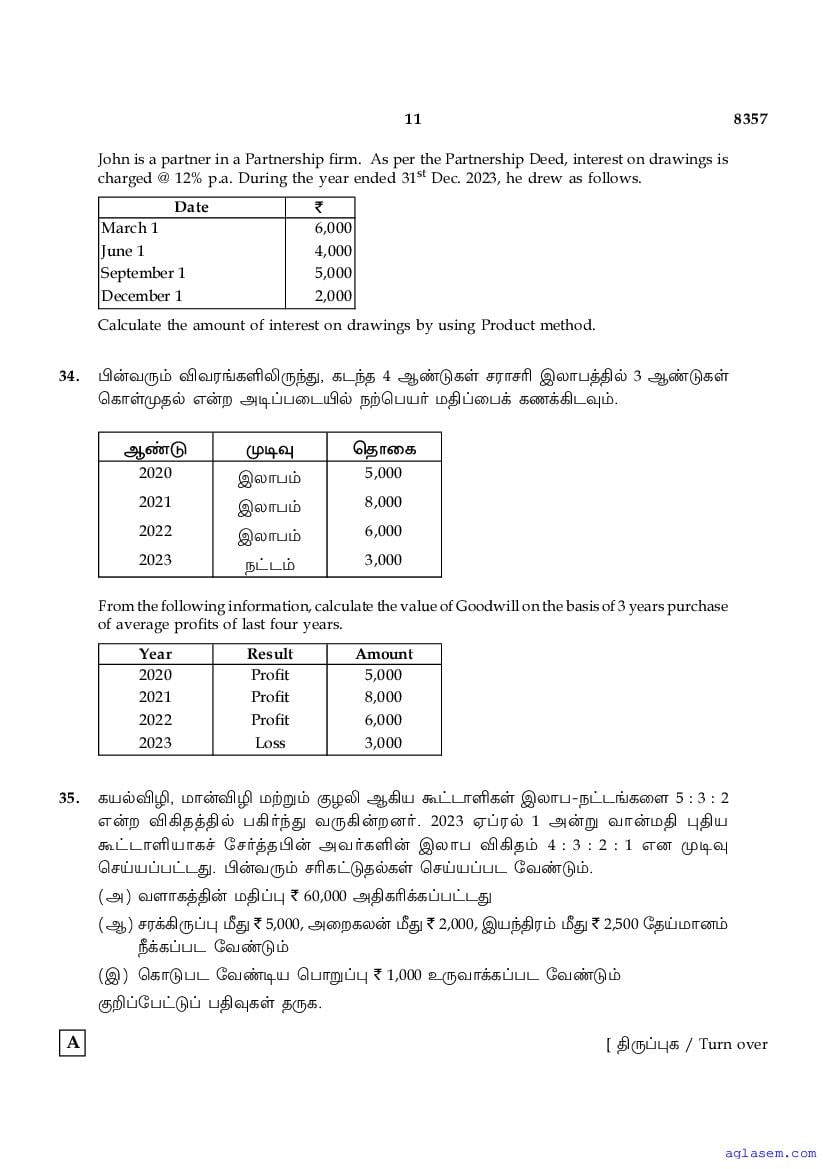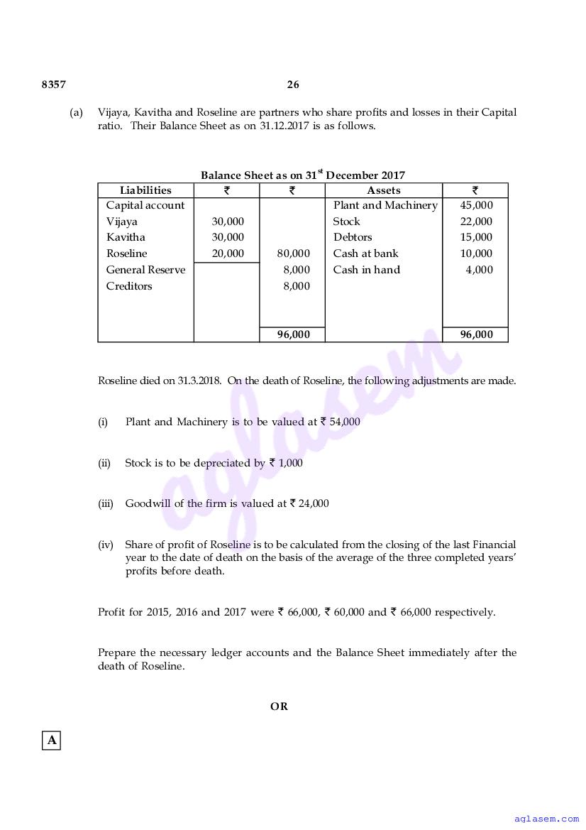 The Tamil Nadu Board Model Paper for class 12 Accountancy is as follows.
