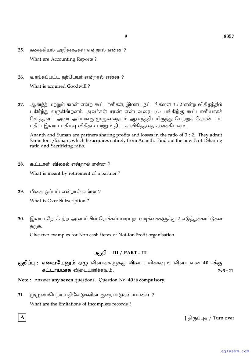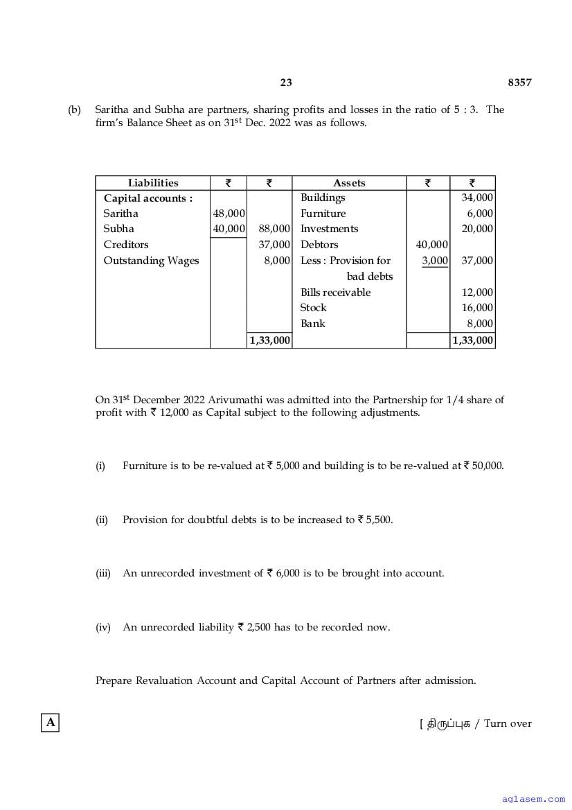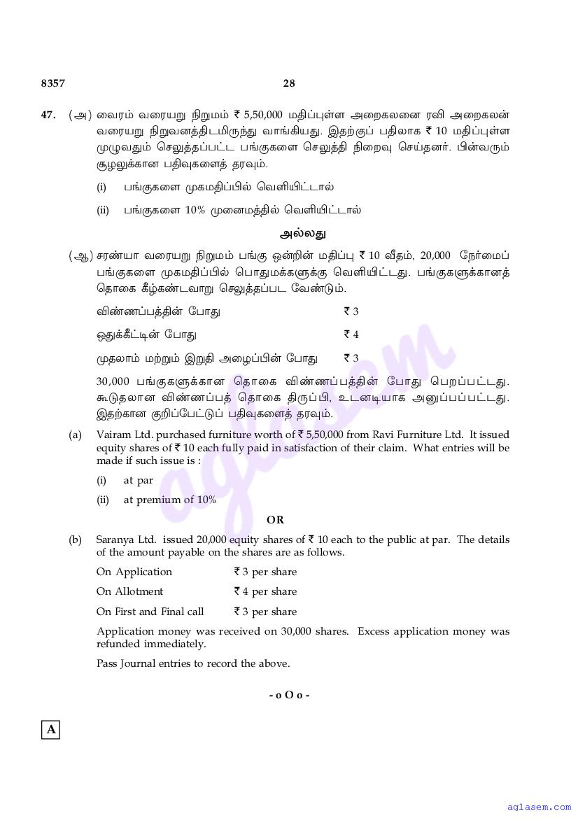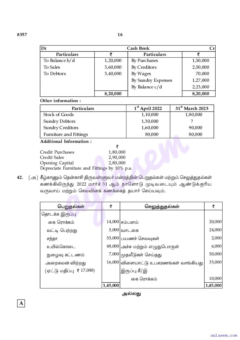 | Study Material Here | Tamil Nadu Board Model Question Paper for Class 12 Accountancy |