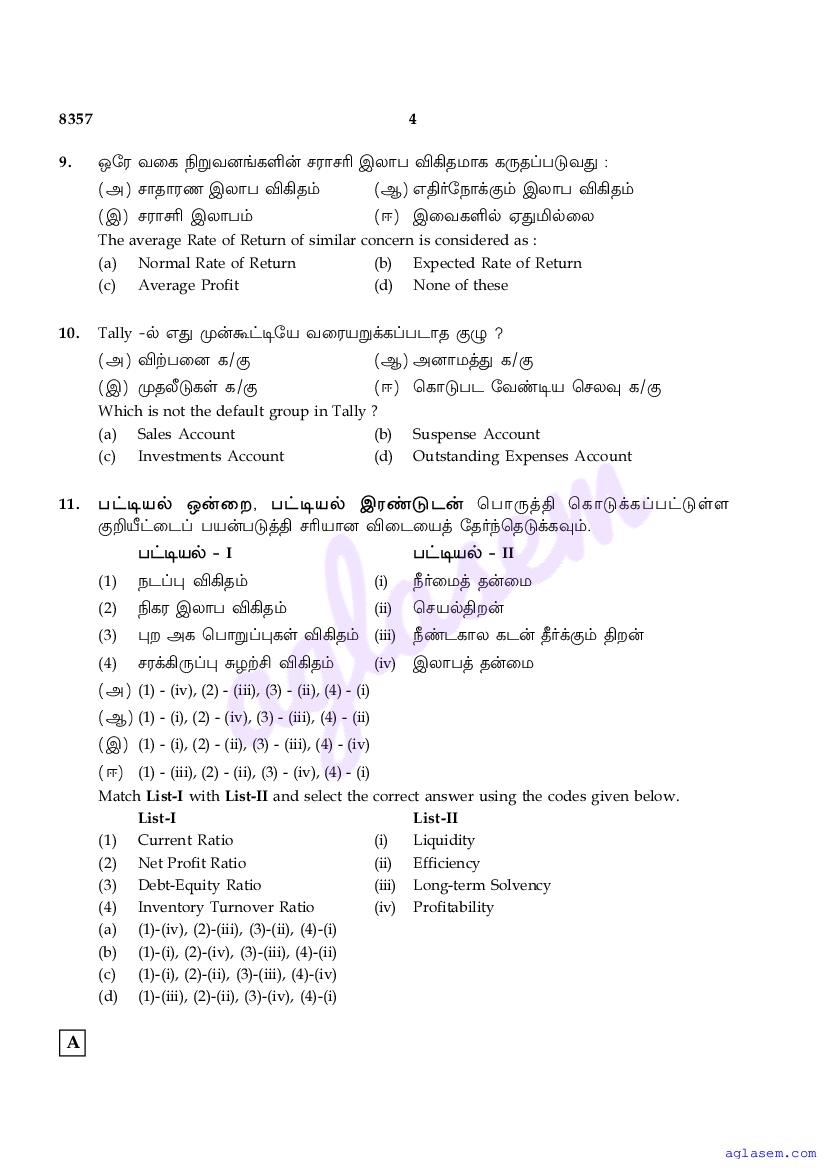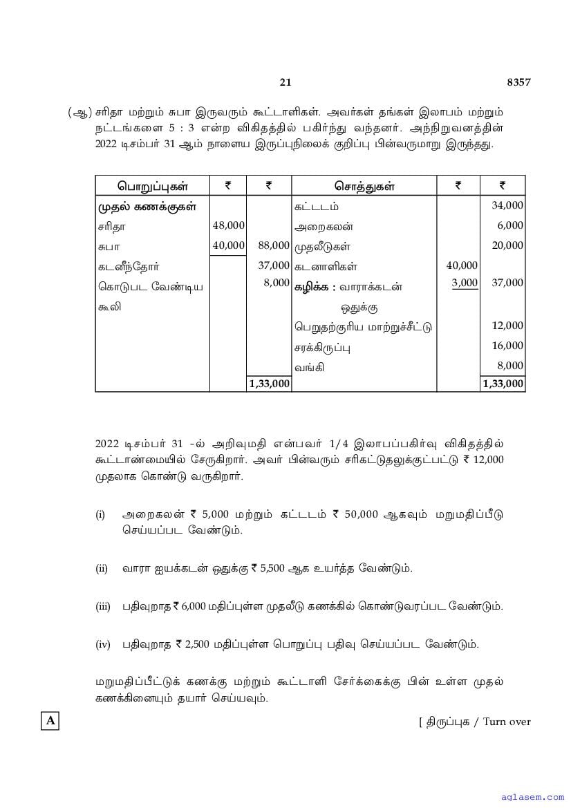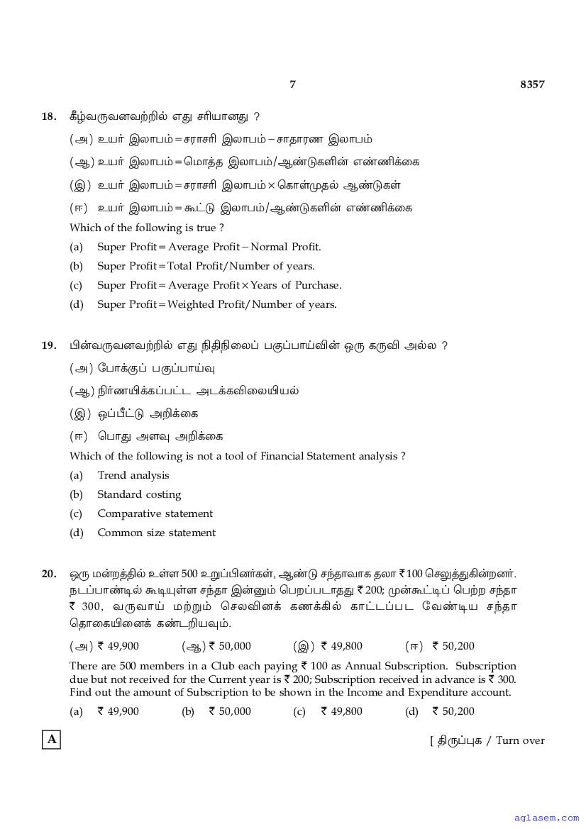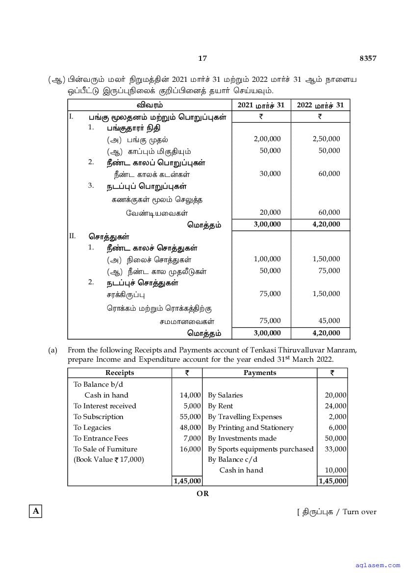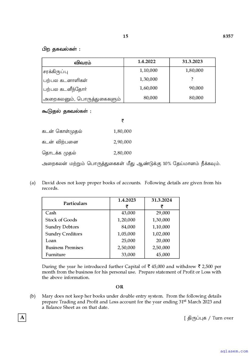 | Study Material Here | Tamil Nadu Board Model Question Paper for Class 12 Accountancy |