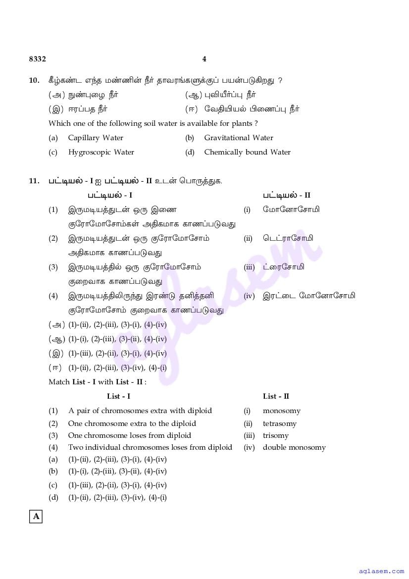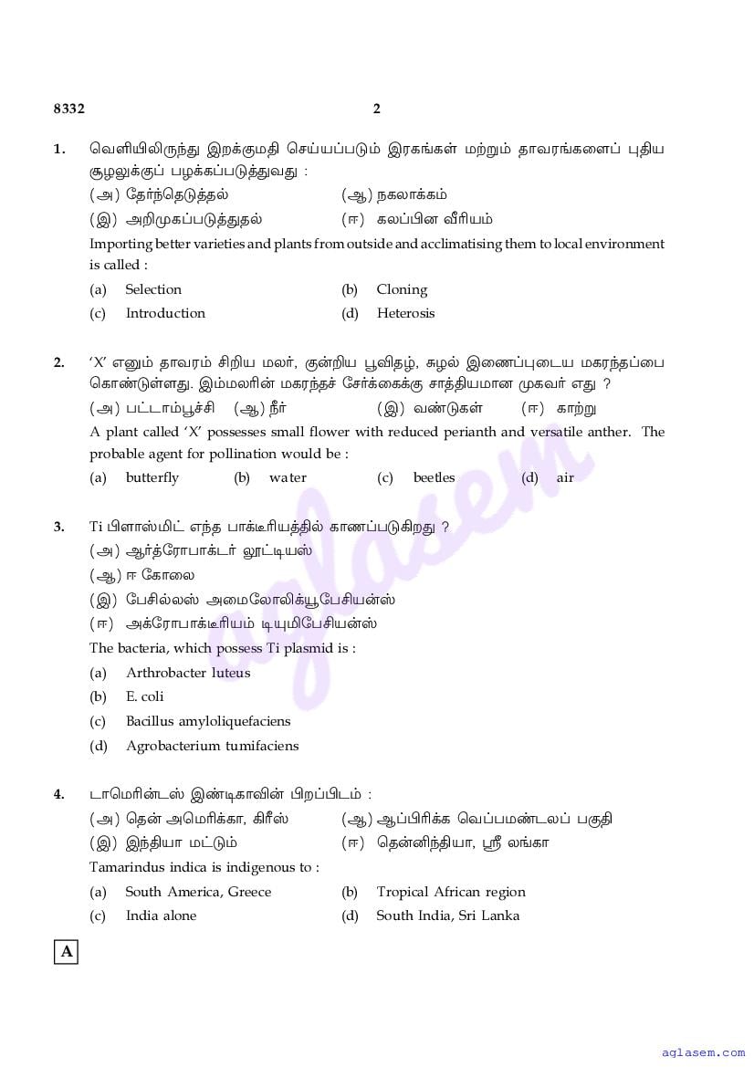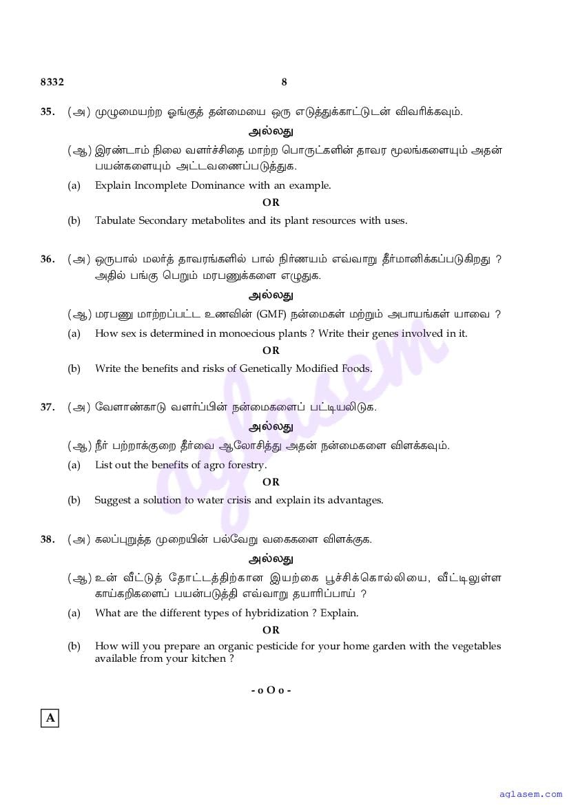 The Tamil Nadu Board Model Paper for class 12 Botany is as follows.