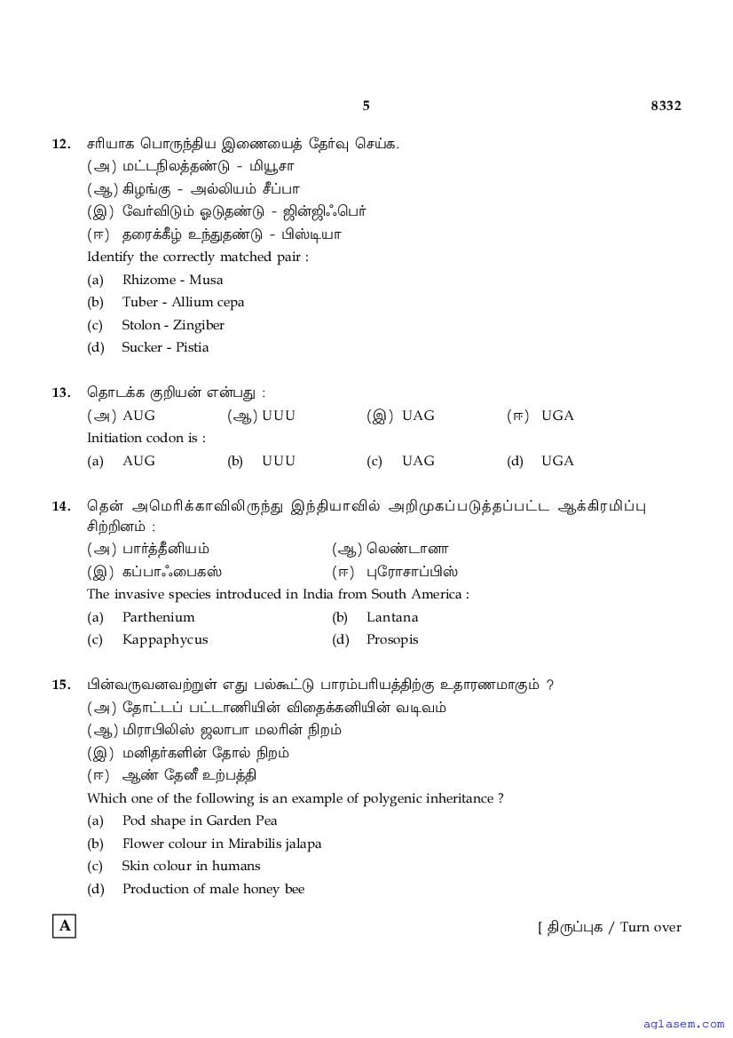 | More Sample Papers for This Class | Tamil Nadu Board Model Question Paper for Class 12 |