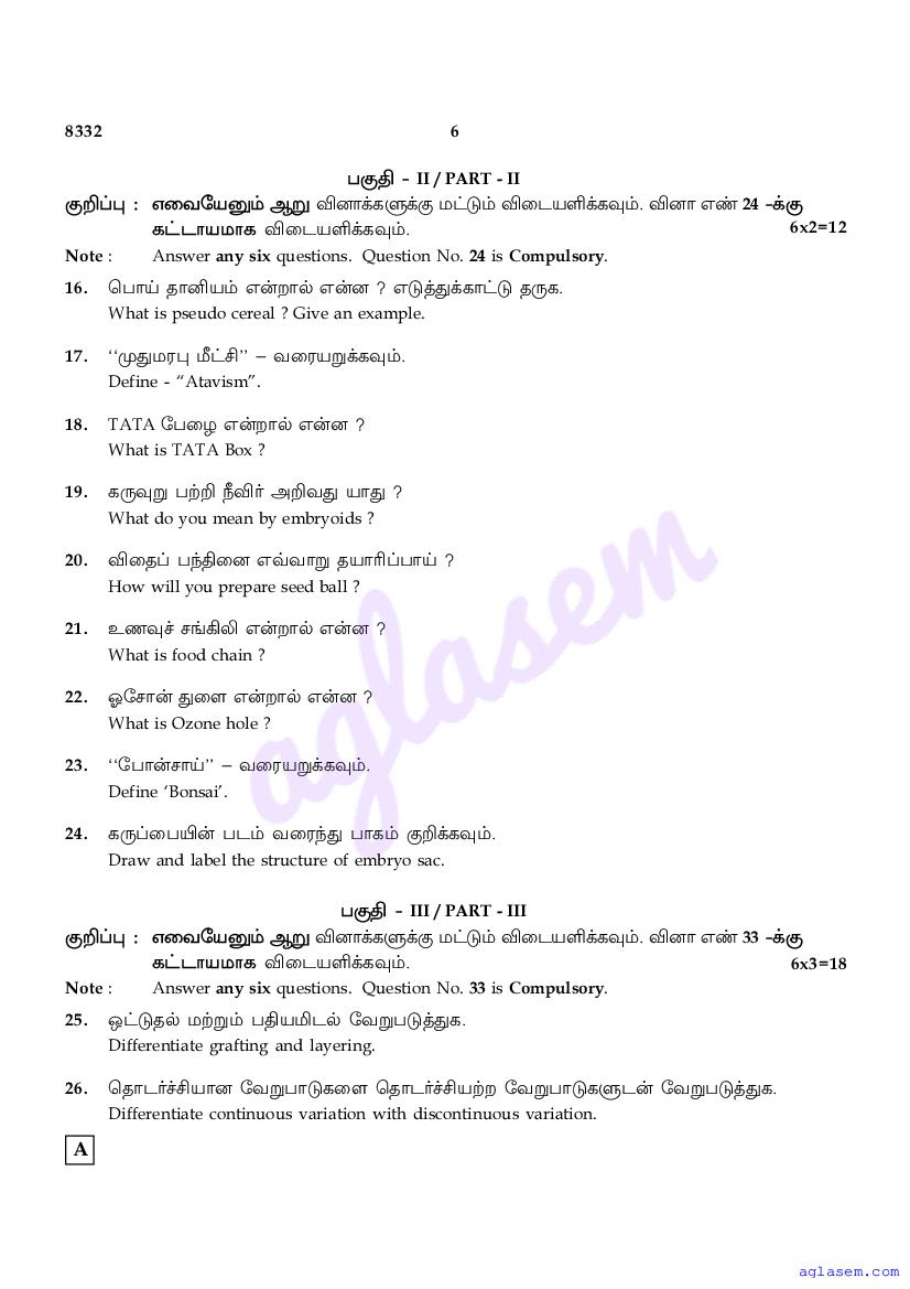 | Study Material Here | Tamil Nadu Board Model Question Paper for Class 12 Botany |