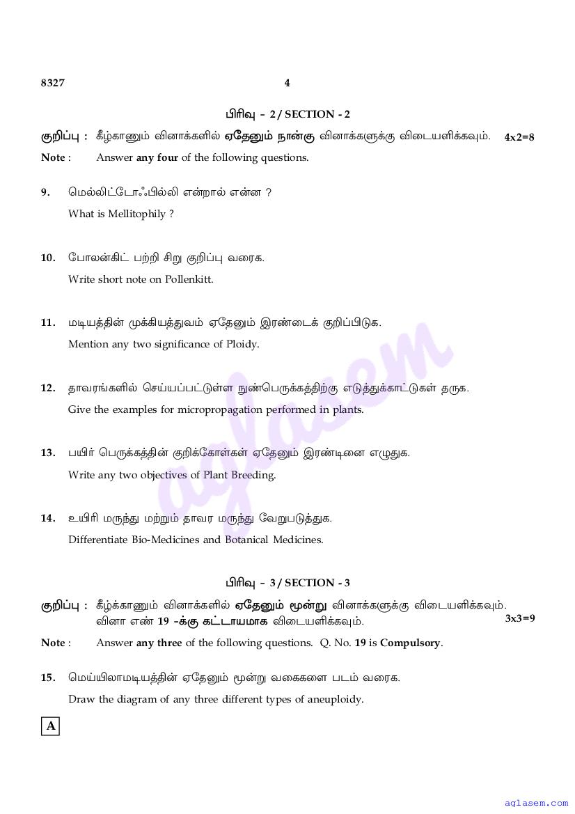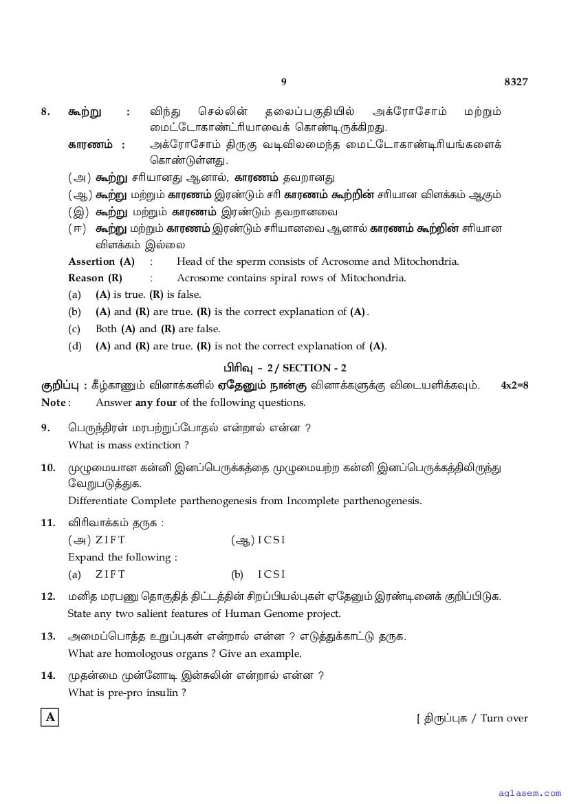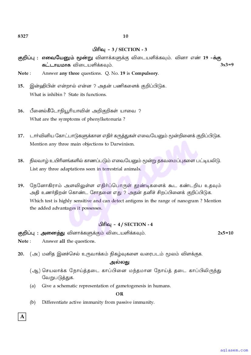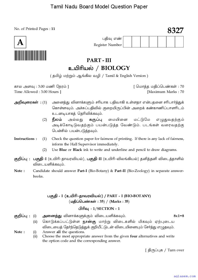 | Study Material Here | Tamil Nadu Board Model Question Paper for Class 12 Biology |