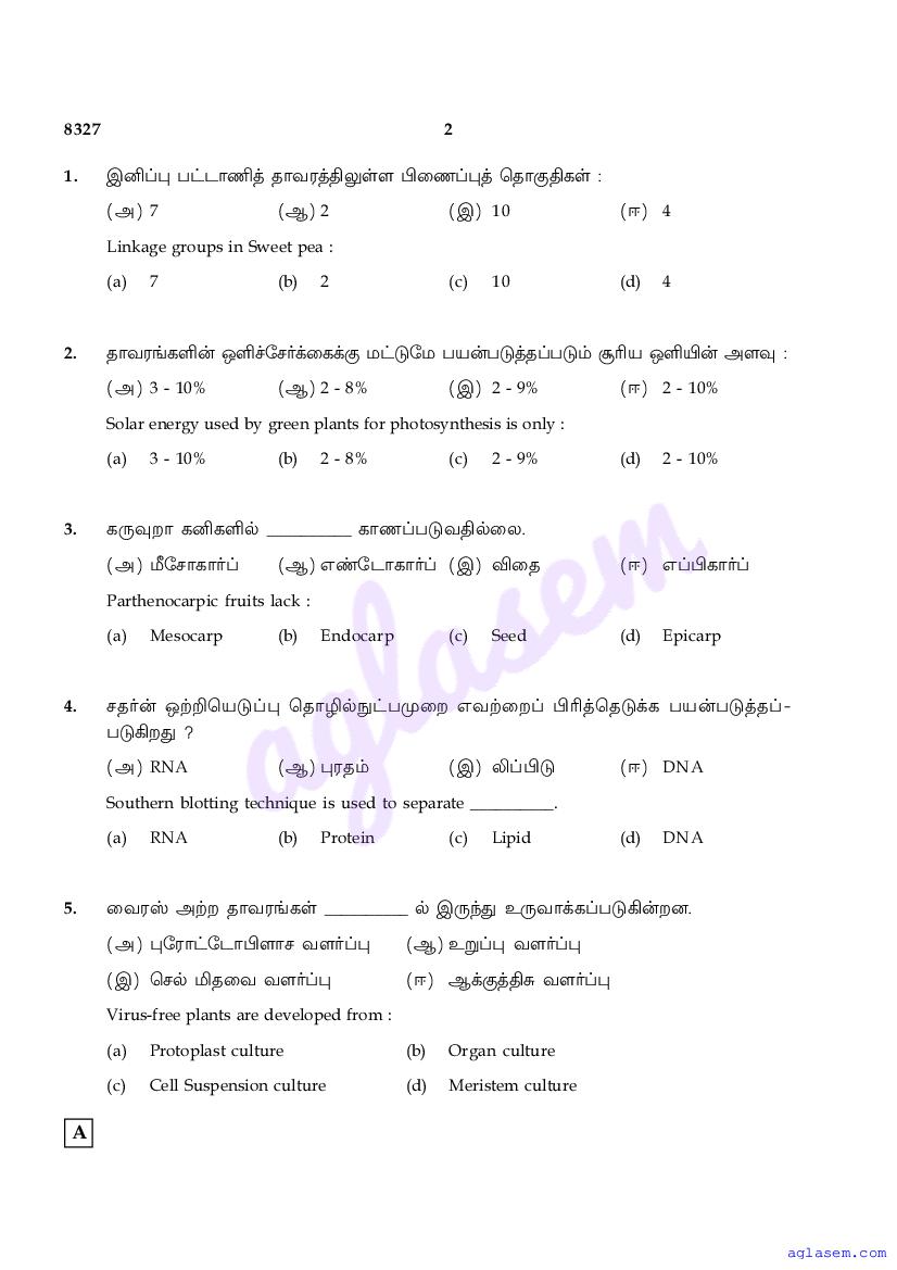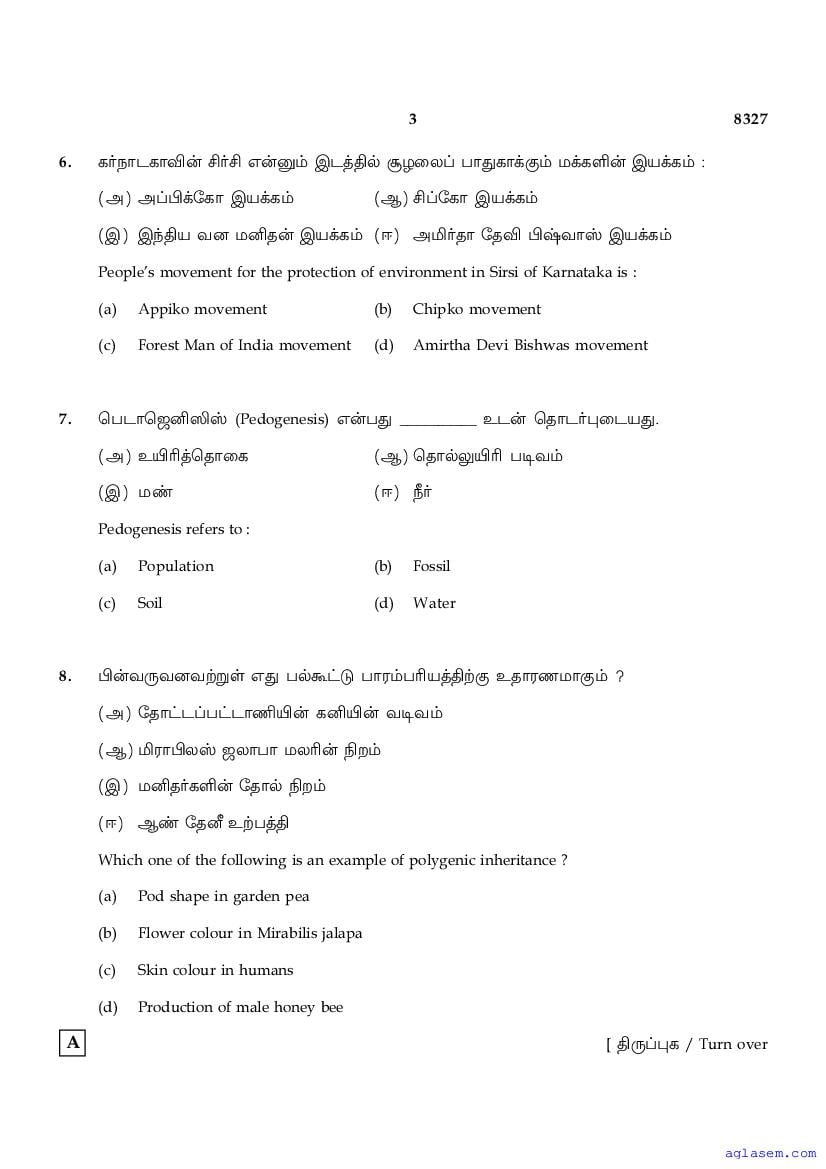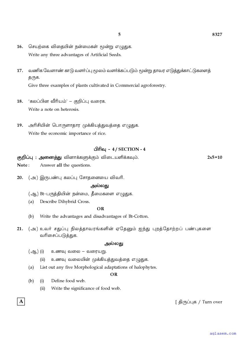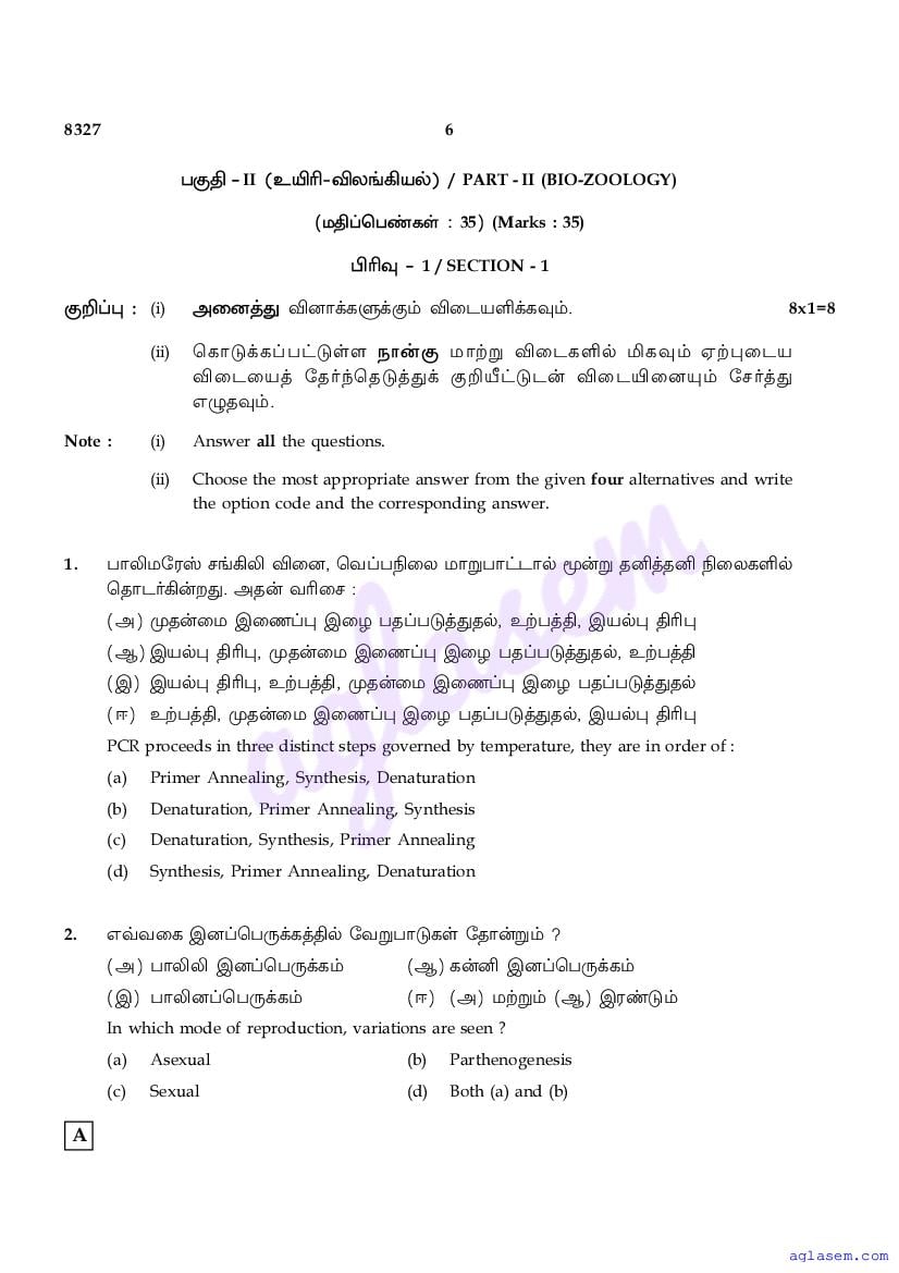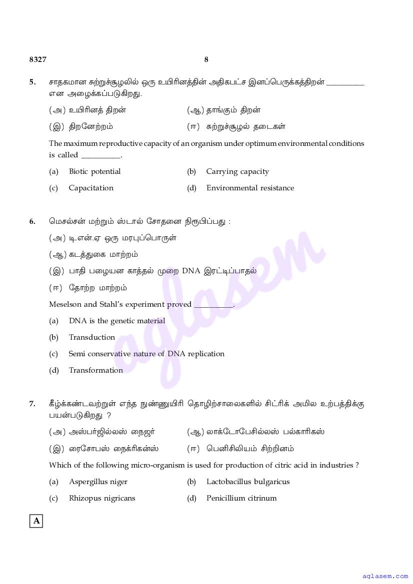| Study Material Here | Tamil Nadu Board Model Question Paper for Class 12 Biology |