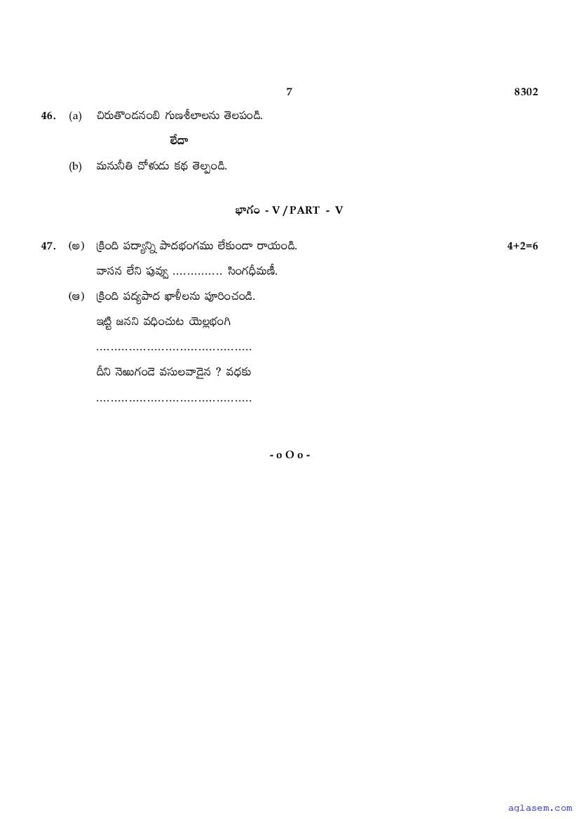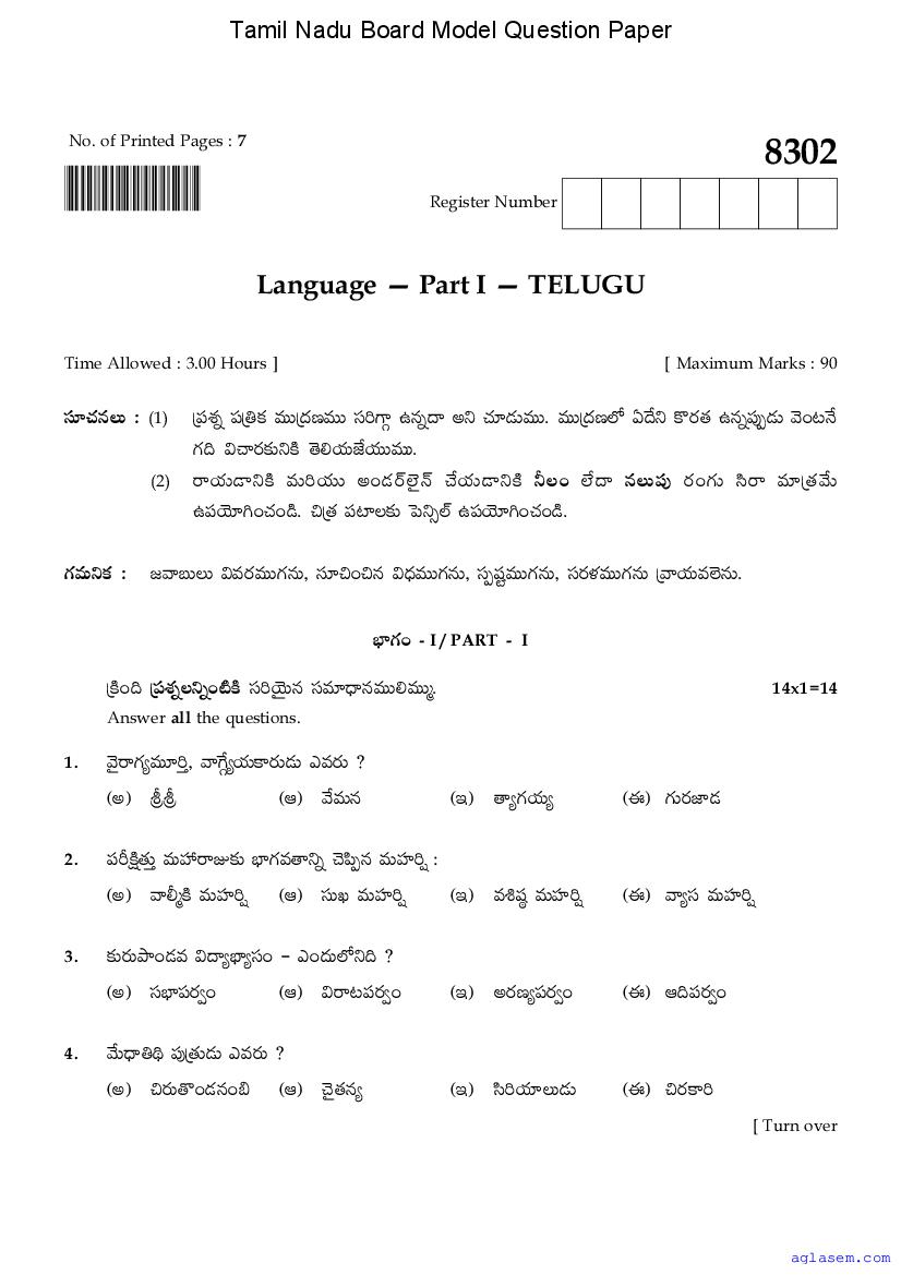 | Study Material Here | Tamil Nadu Board Model Question Paper for Class 12 Telugu |