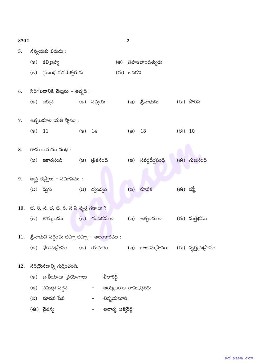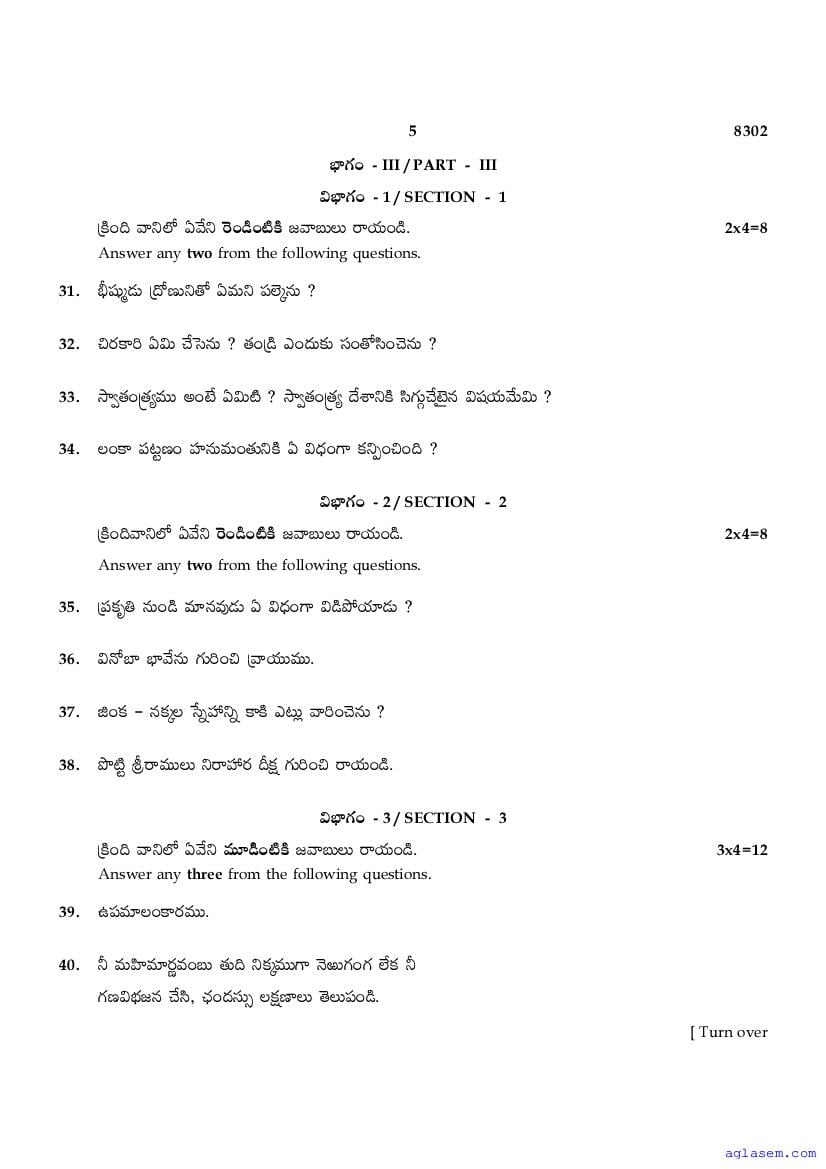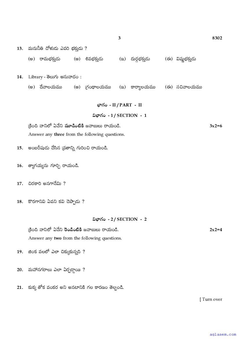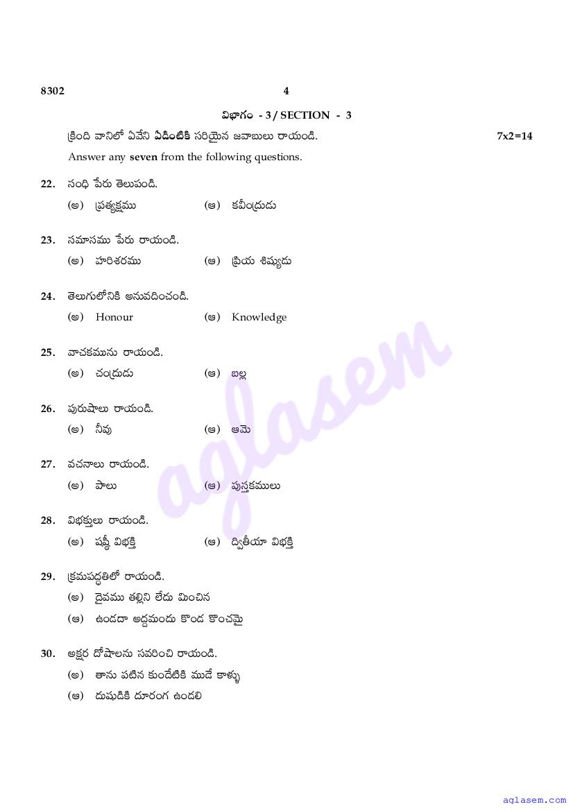 The Tamil Nadu Board Model Paper for class 12 Telugu is as follows.