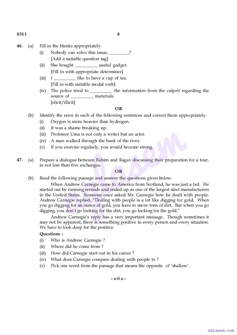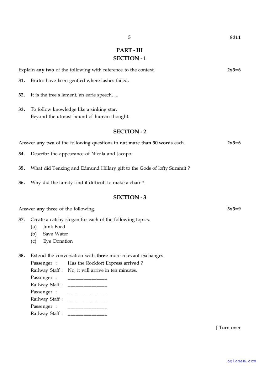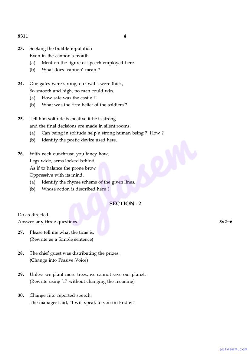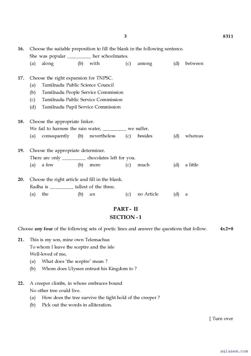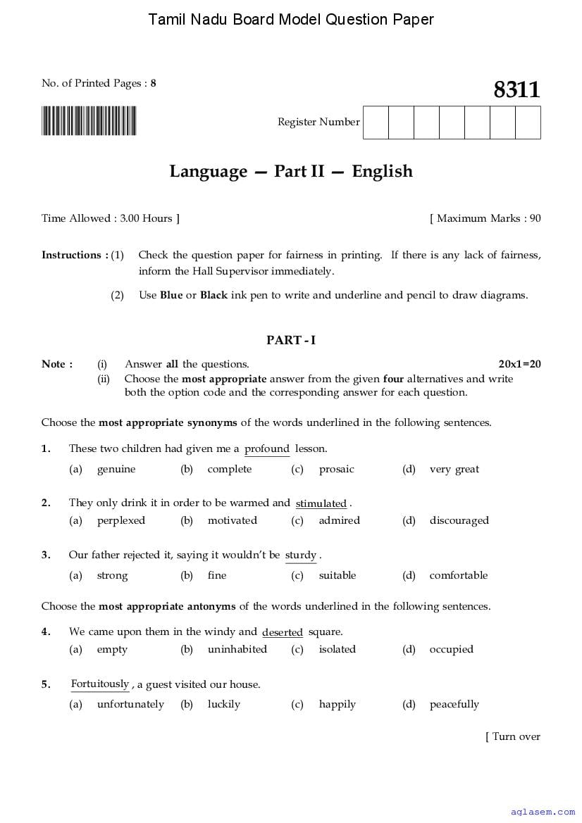 | Study Material Here | Tamil Nadu Board Model Question Paper for Class 12 English |