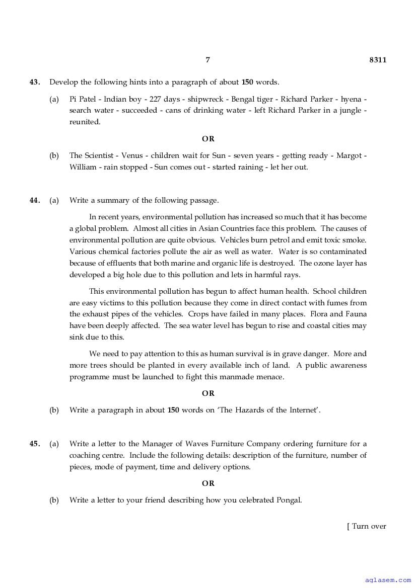 The Tamil Nadu Board Model Paper for class 12 English is as follows.