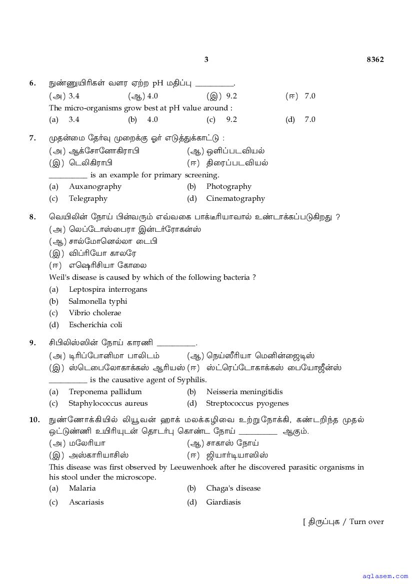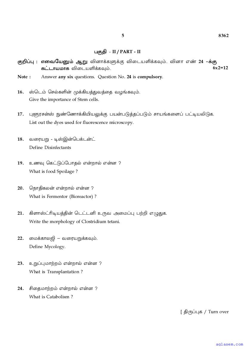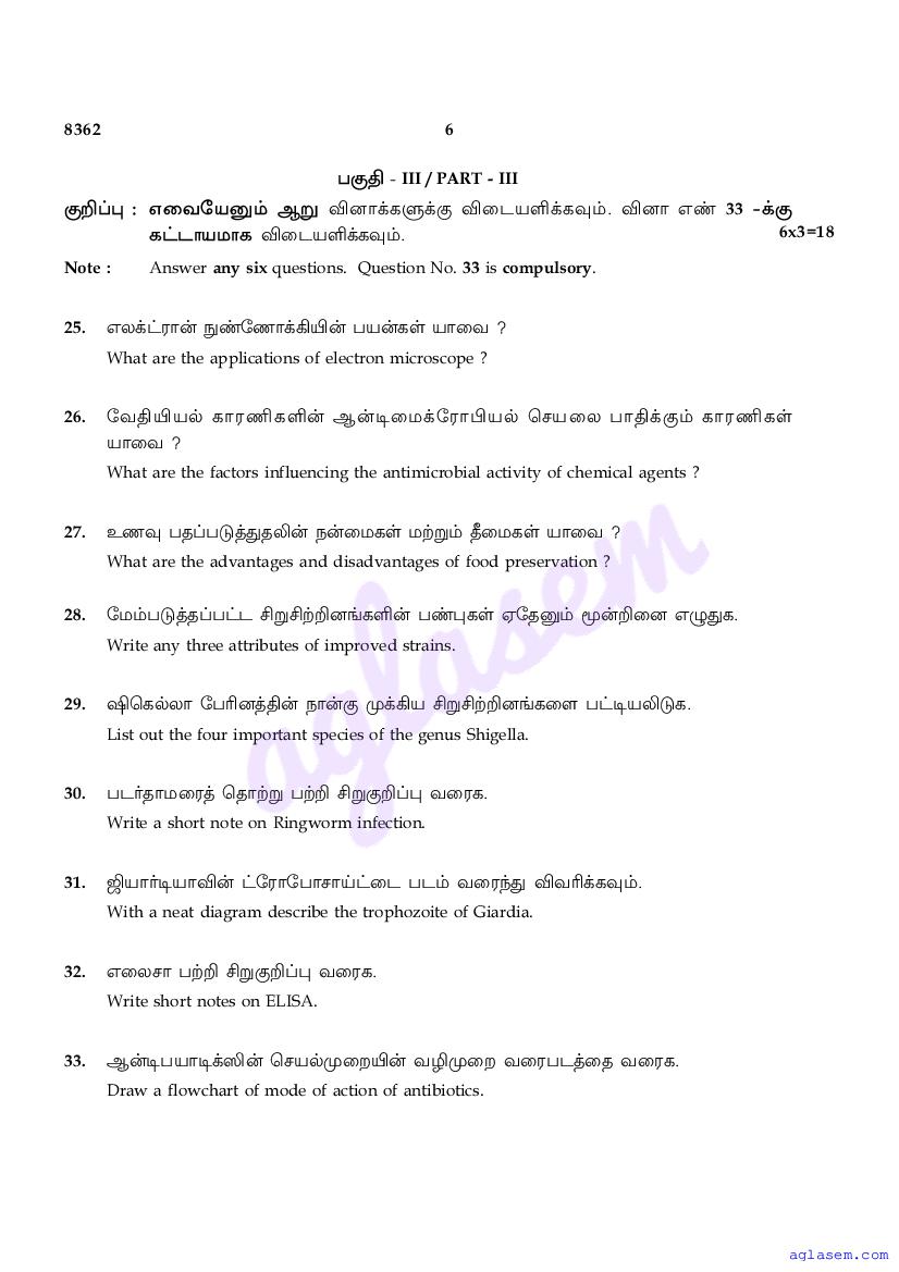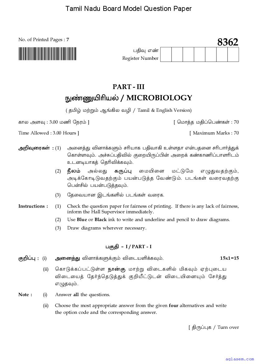 | Study Material Here | Tamil Nadu Board Model Question Paper for Class 12 Microbiology |