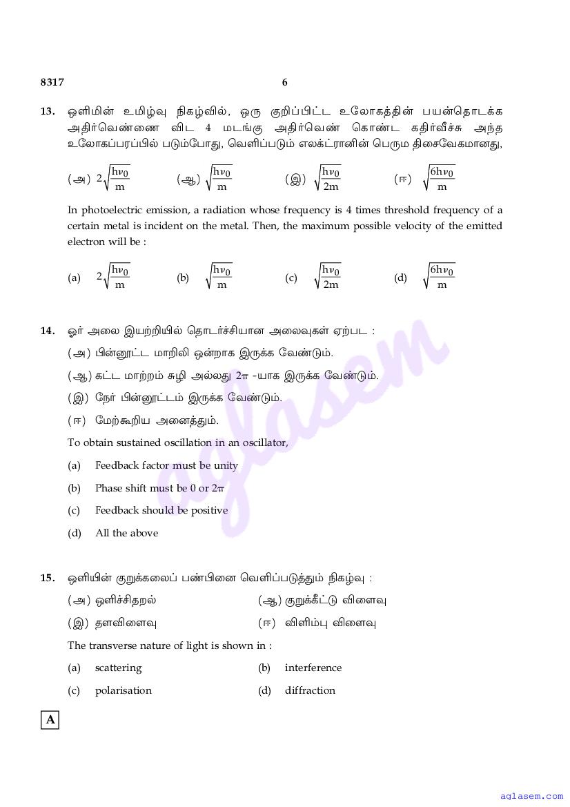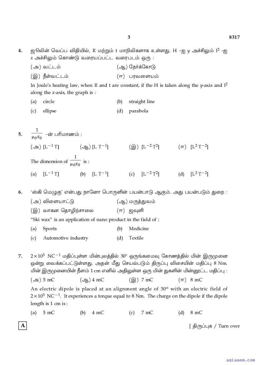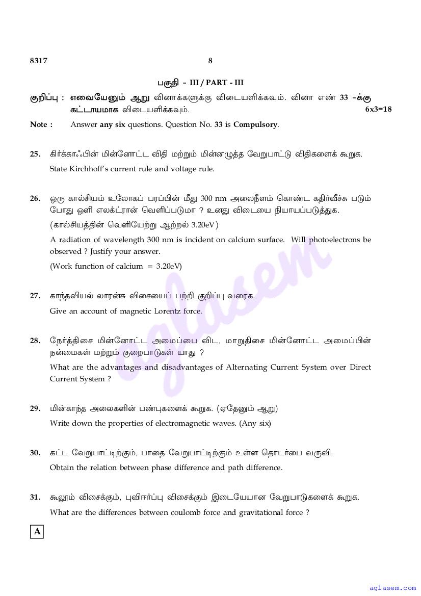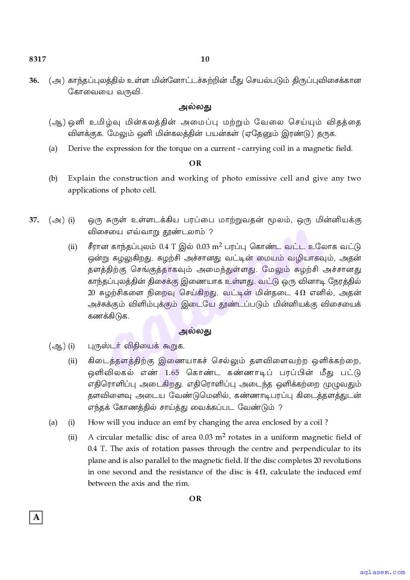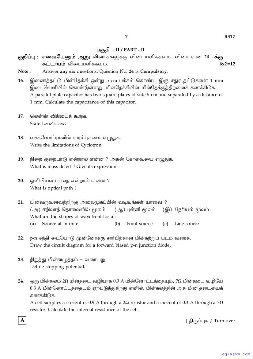 | Study Material Here | Tamil Nadu Board Model Question Paper for Class 12 Physics |