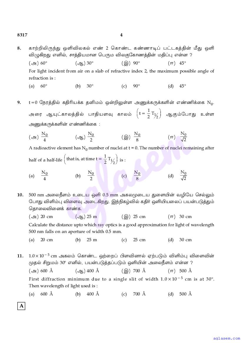 தமிழ்நாடு போர்டு வகுப்பு 12 Physics மாதிரி வினாத்தாள் 2026 உங்கள் 12 ஆம் வகுப்பு போர்டு தேர்வுகளுக்குத் தயாராவதற்கு உதவும் வகையில் வெளியிடப்பட்டுள்ளது. நீங்கள் இப்போது HSC (+2) Physics மாதிரி பேப்பர் PDF ஐ இங்கிருந்து aglasem.com இல் பதிவிறக்கம் செய்யலாம். 12 ஆம் வகுப்பின் சமீபத்திய DGE TN பாடத்திட்டத்தின்படி மாதிரித் தாளில் மாதிரி கேள்விகள் உள்ளன Physics. எனவே நீங்கள் இந்த வினாத்தாளைத் தீர்த்தால், 12 ஆம் வகுப்பு Physics தேர்வில் 100% மதிப்பெண்கள் பெறுவதற்கான வாய்ப்புகளை மேம்படுத்துகிறது.