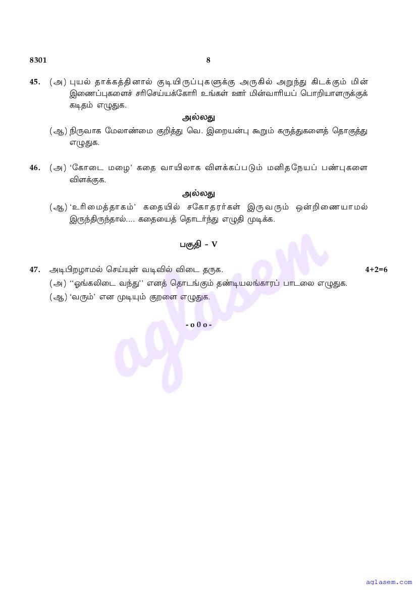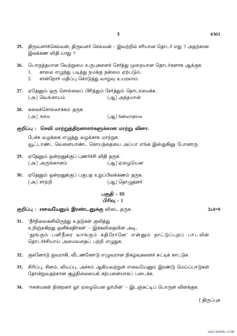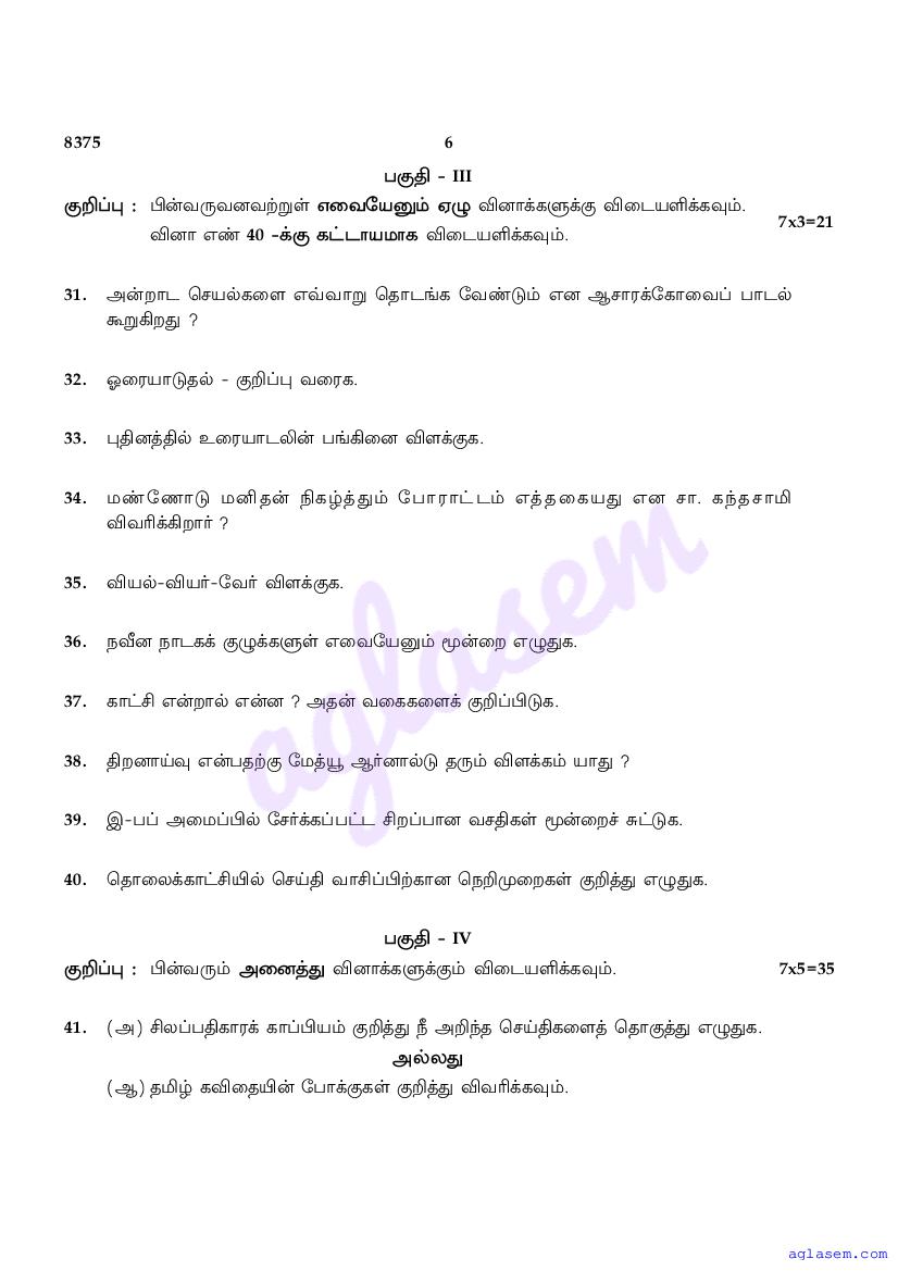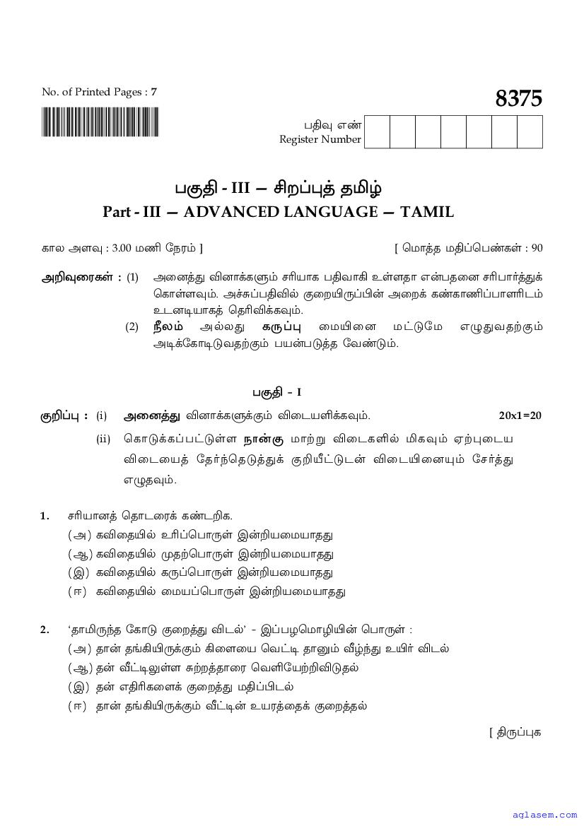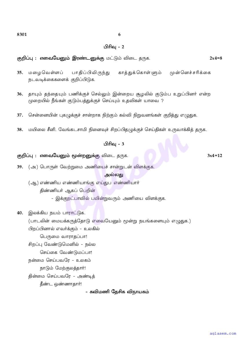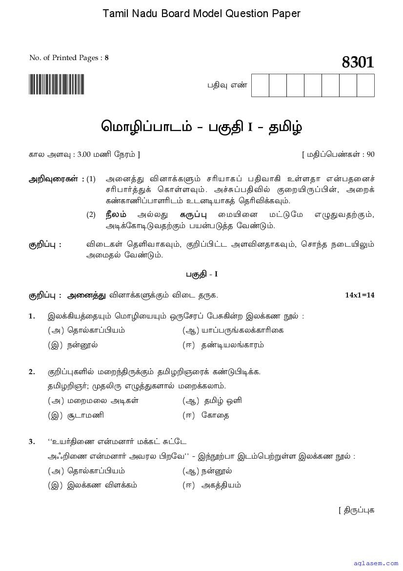 The Tamil Nadu Board Model Paper for class 12 Tamil is as follows.