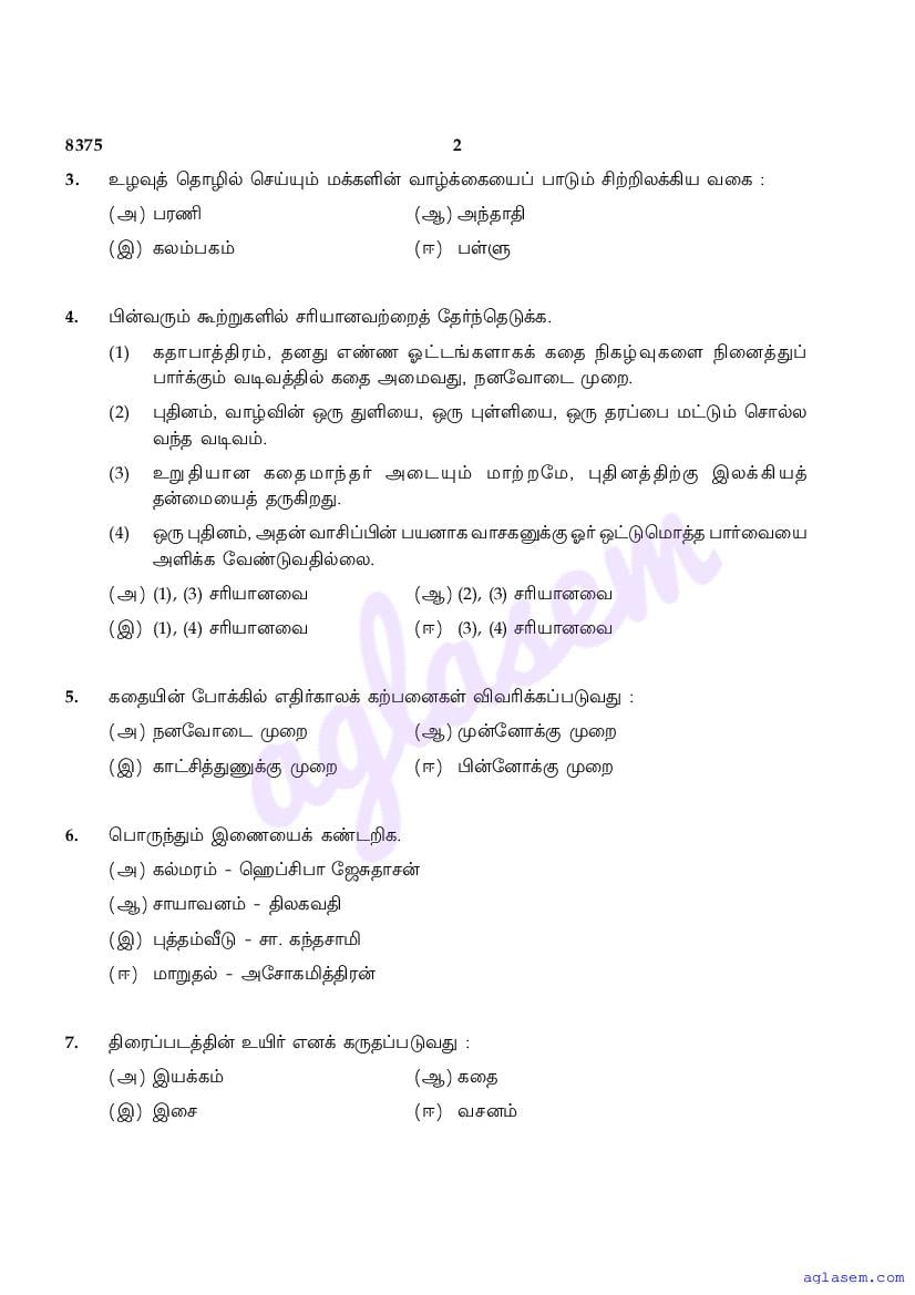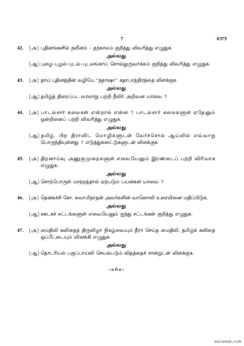 | Study Material Here | Tamil Nadu Board Model Question Paper for Class 12 Tamil |