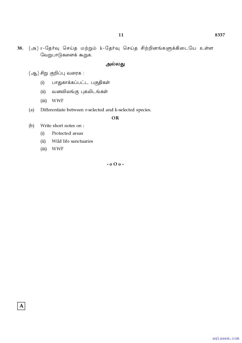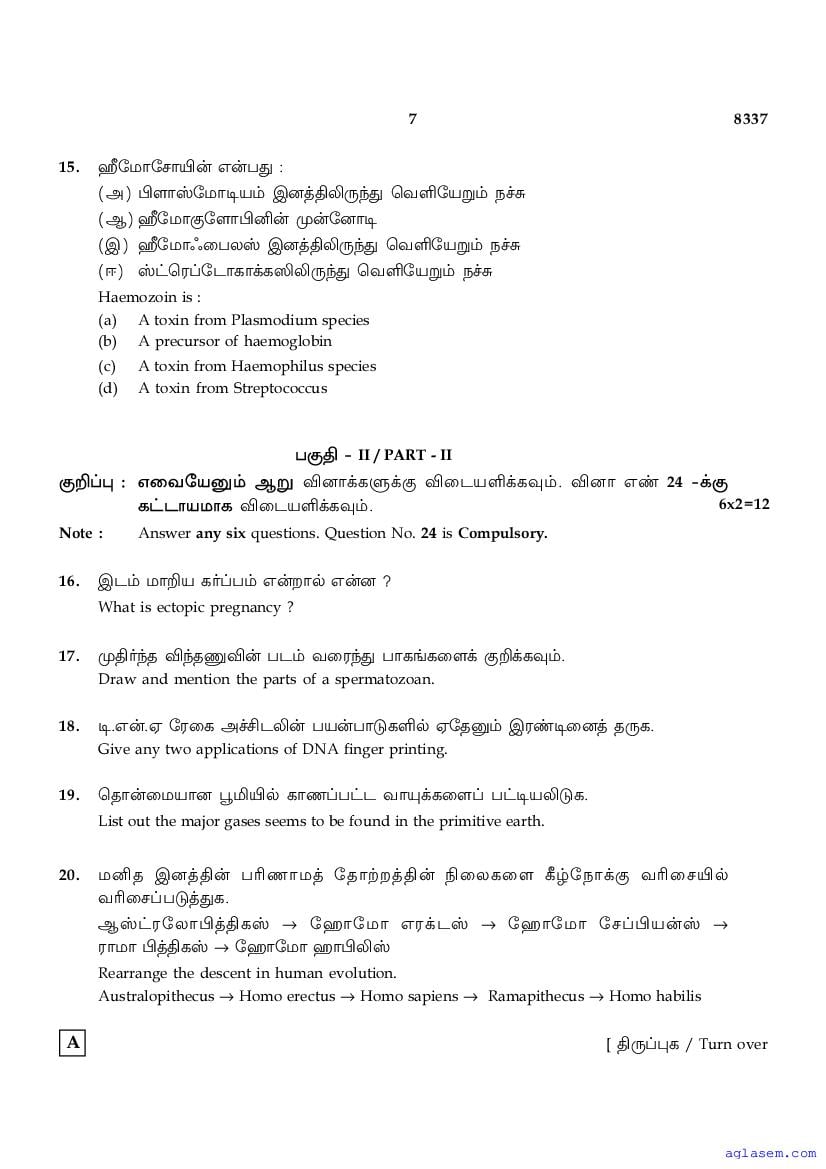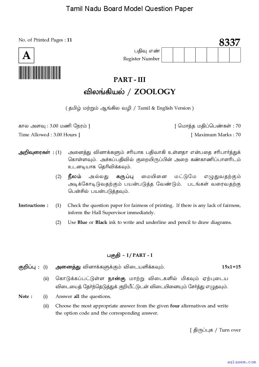 | Study Material Here | Tamil Nadu Board Model Question Paper for Class 12 Zoology |