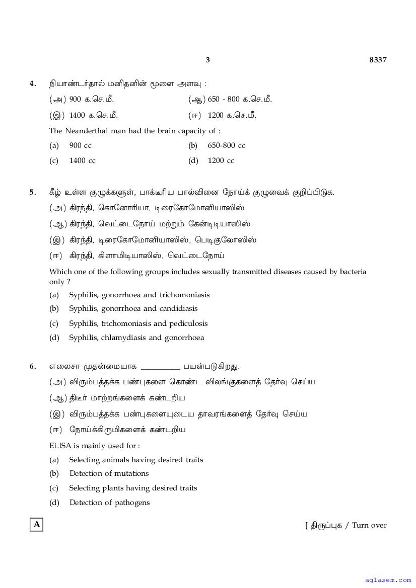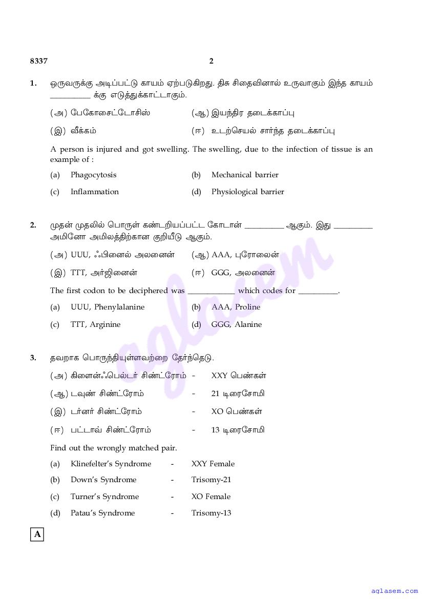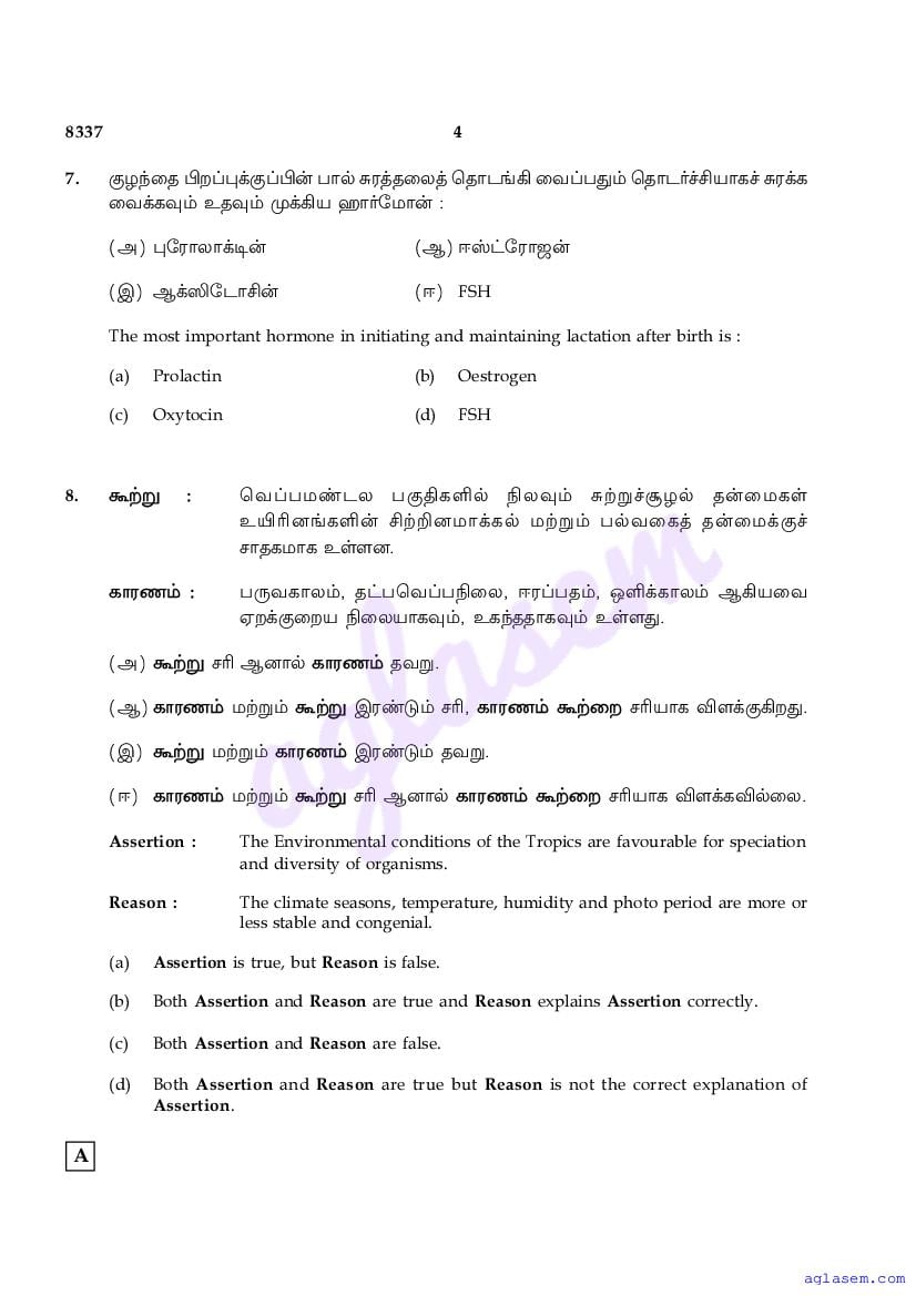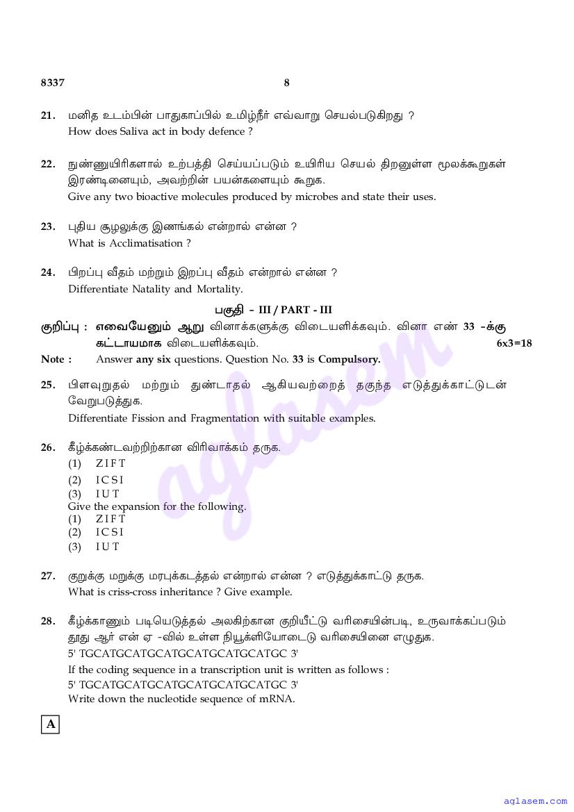 | Study Material Here | Tamil Nadu Board Model Question Paper for Class 12 Zoology |