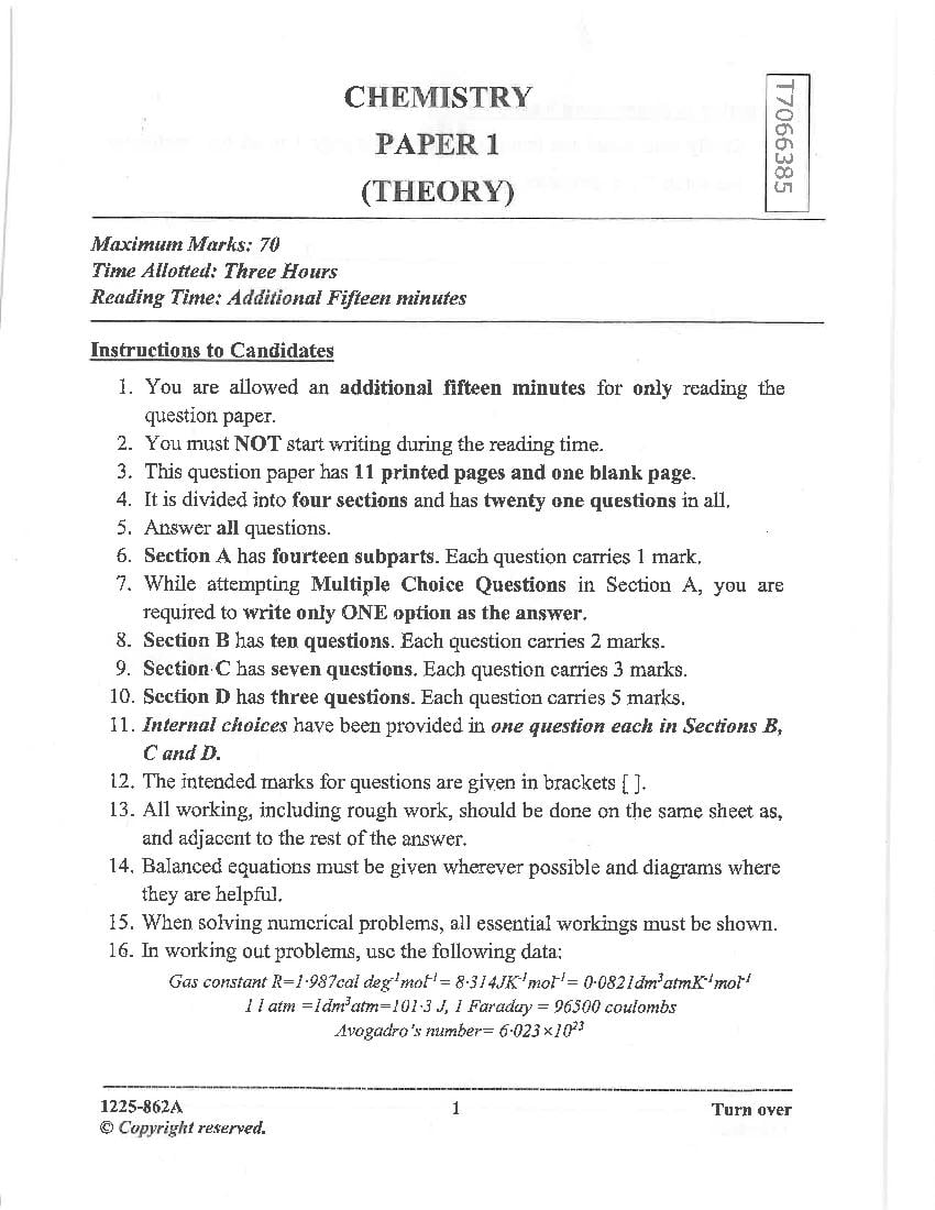 The complete Chemistry question paper of last year is as follows. However you may find more ISC question paper pdf download link below.