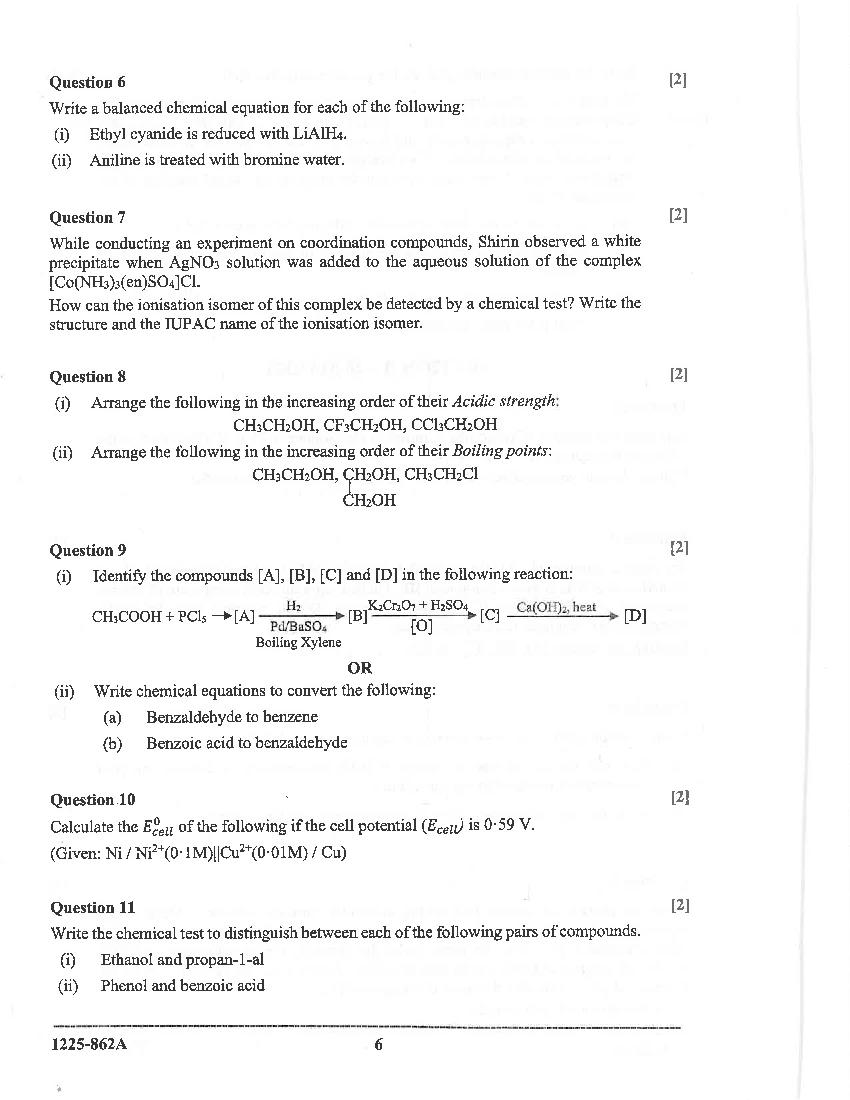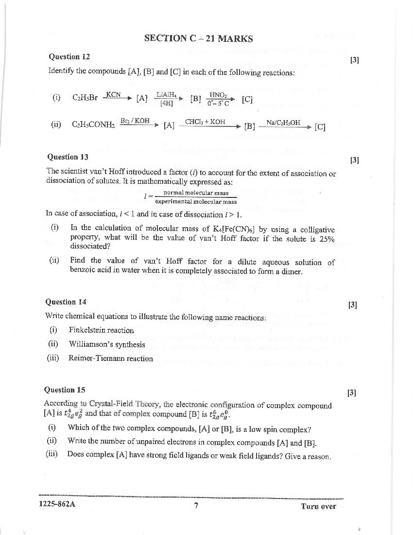 The CISCE previous year question paper of ISC Class 12 for Chemistry are as follows.