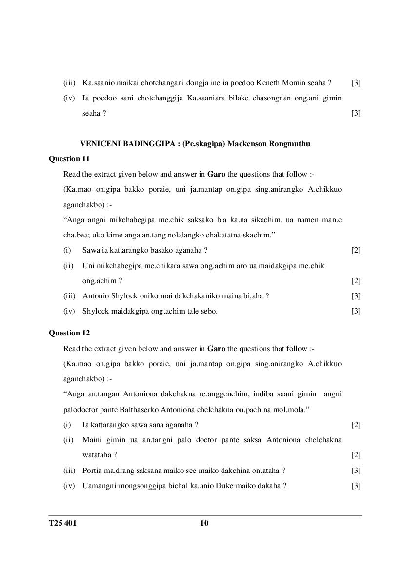 ICSE Class 10 Question Paper 2025 Garo View Download