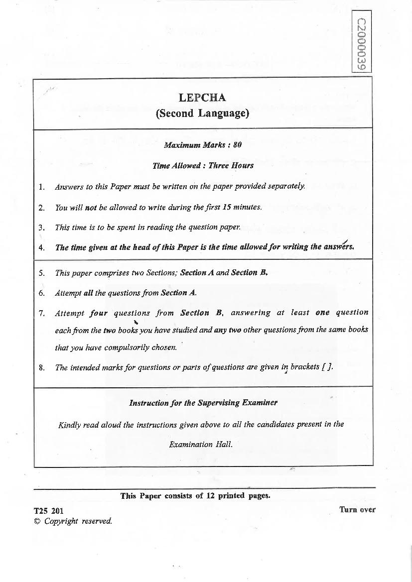 The complete Lepcha question paper of last year is as follows. However you may find more ICSE question paper pdf download link below.