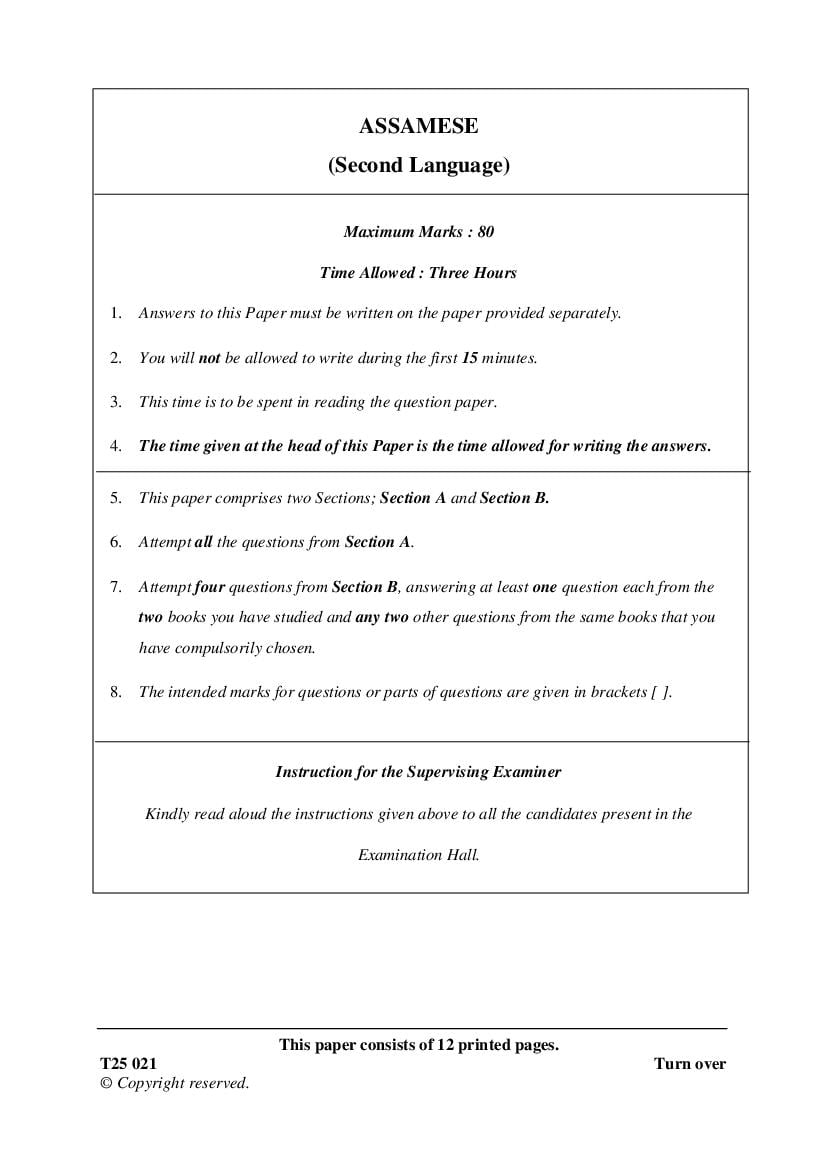 The complete Assamese question paper of last year is as follows. However you may find more ICSE question paper pdf download link below.