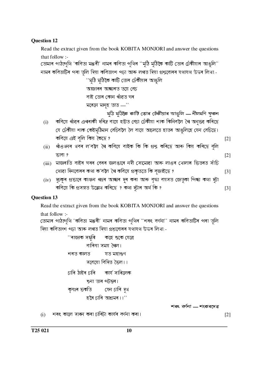 | Resources Here | CISCE Previous Year Question Papers of Class 10 Assamese |