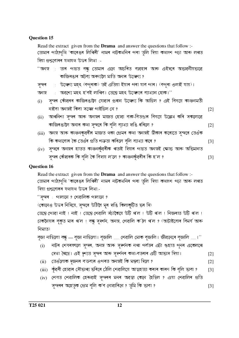 ICSE Class 10 Question Paper 2025 Assamese View Download