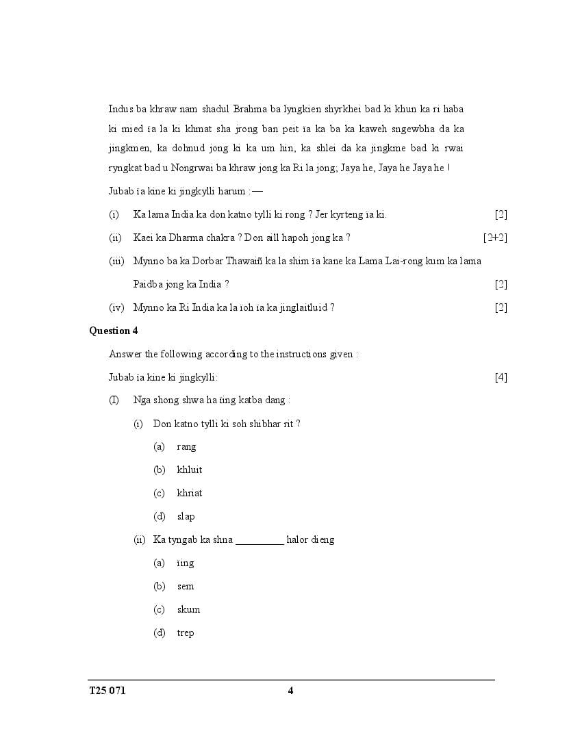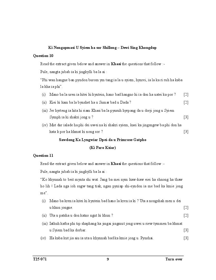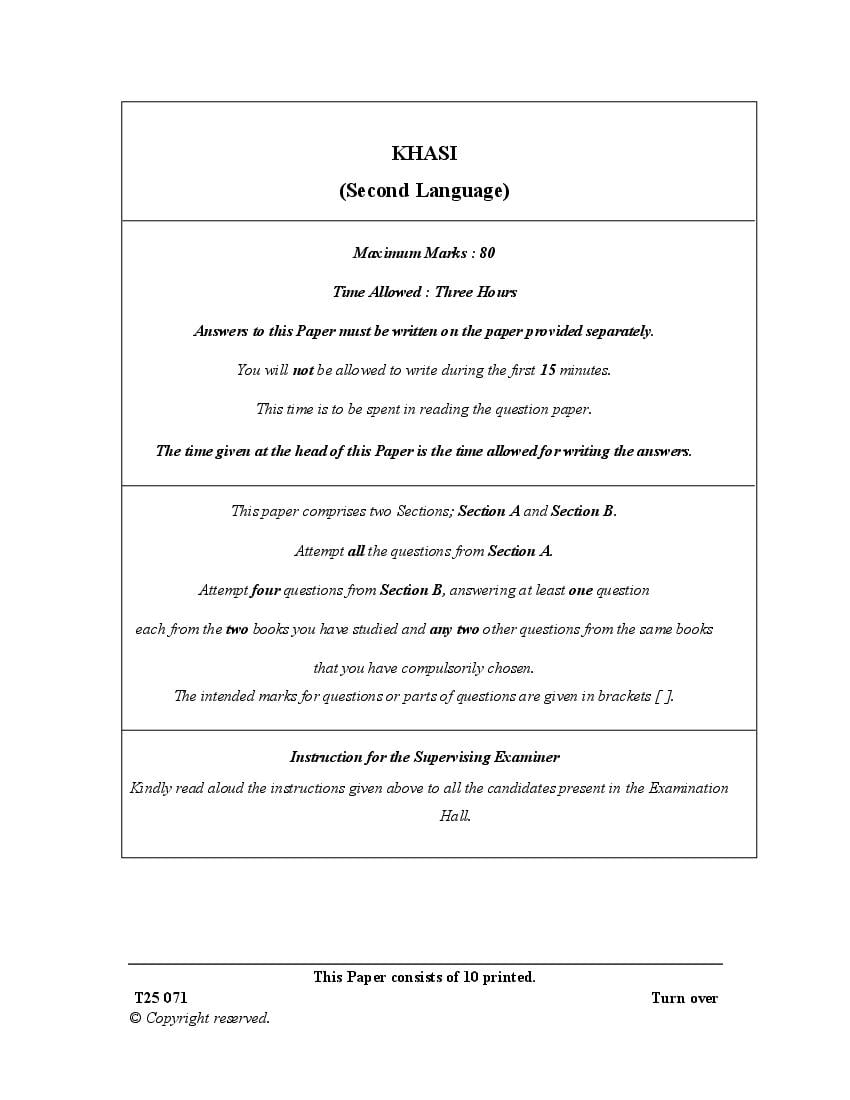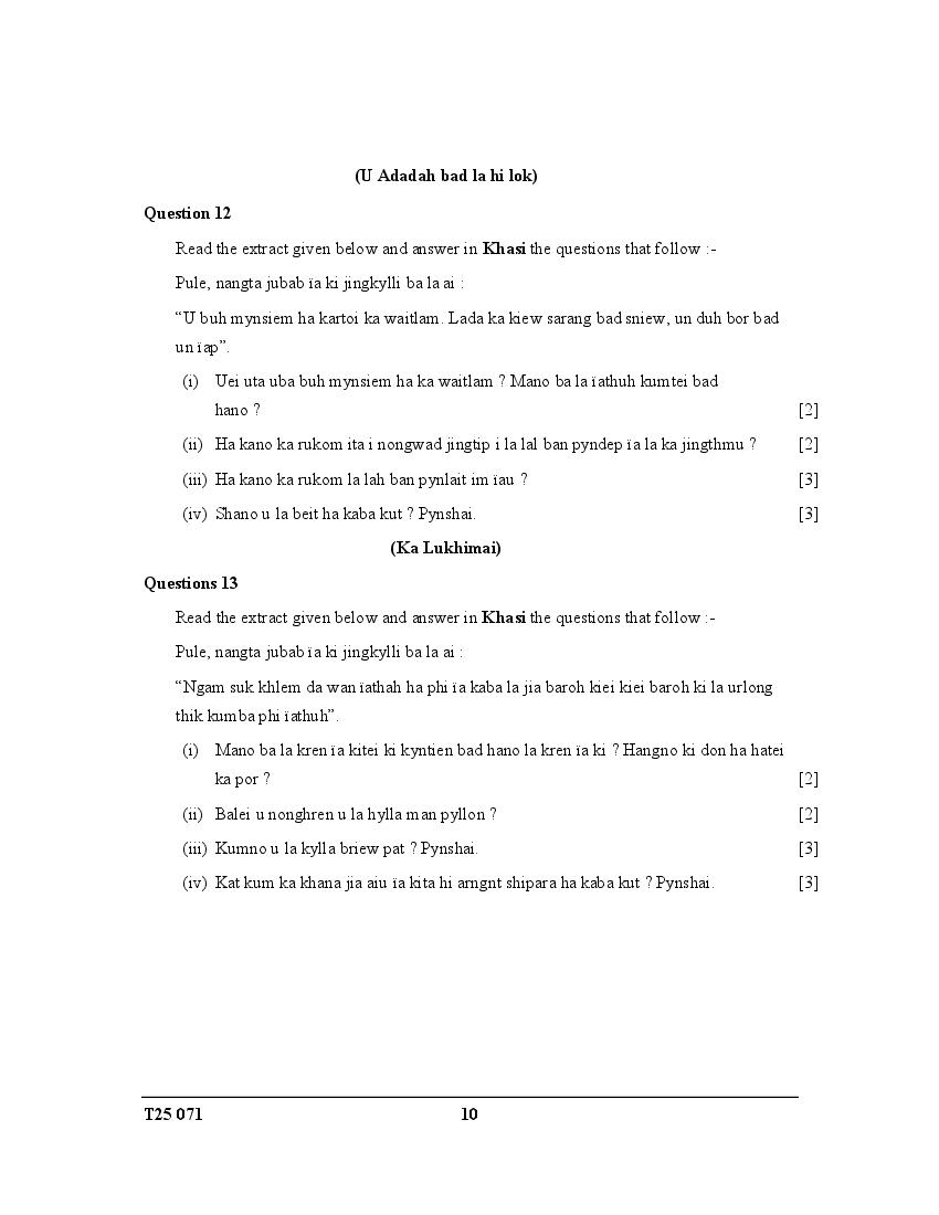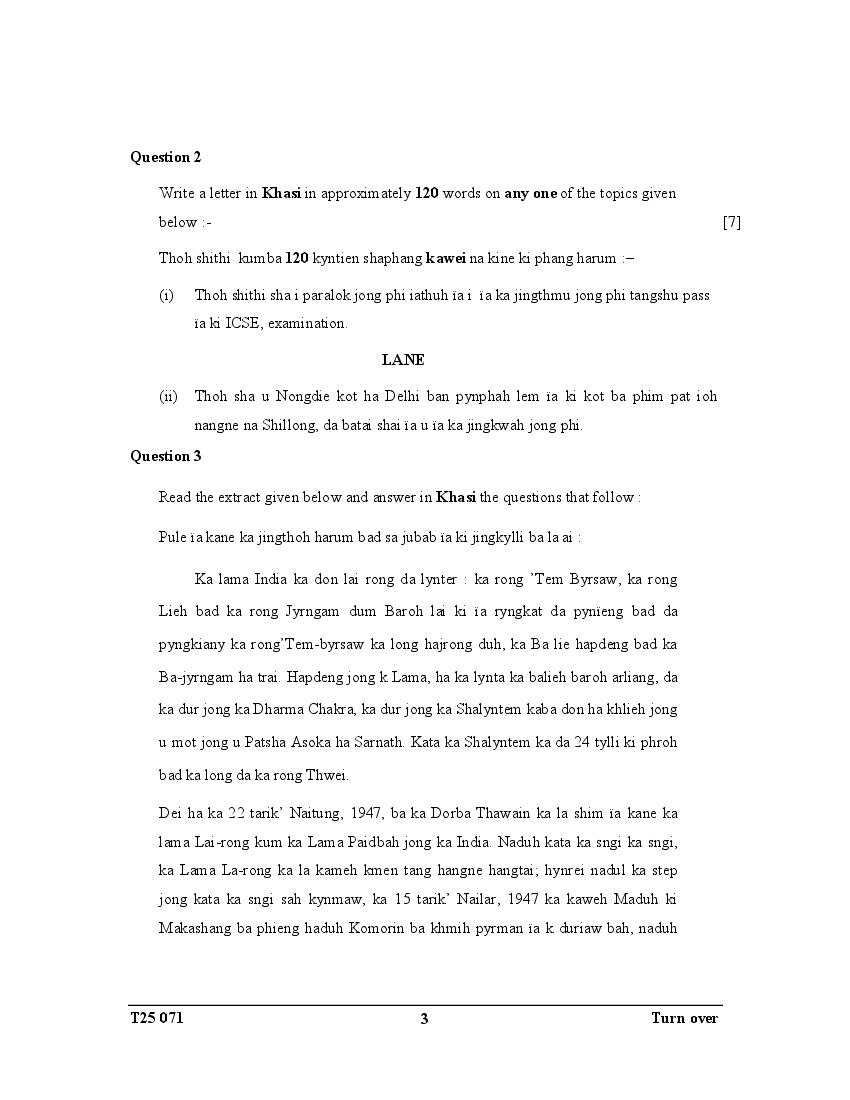 ICSE Class 10 Question Paper 2025 Khasi View Download