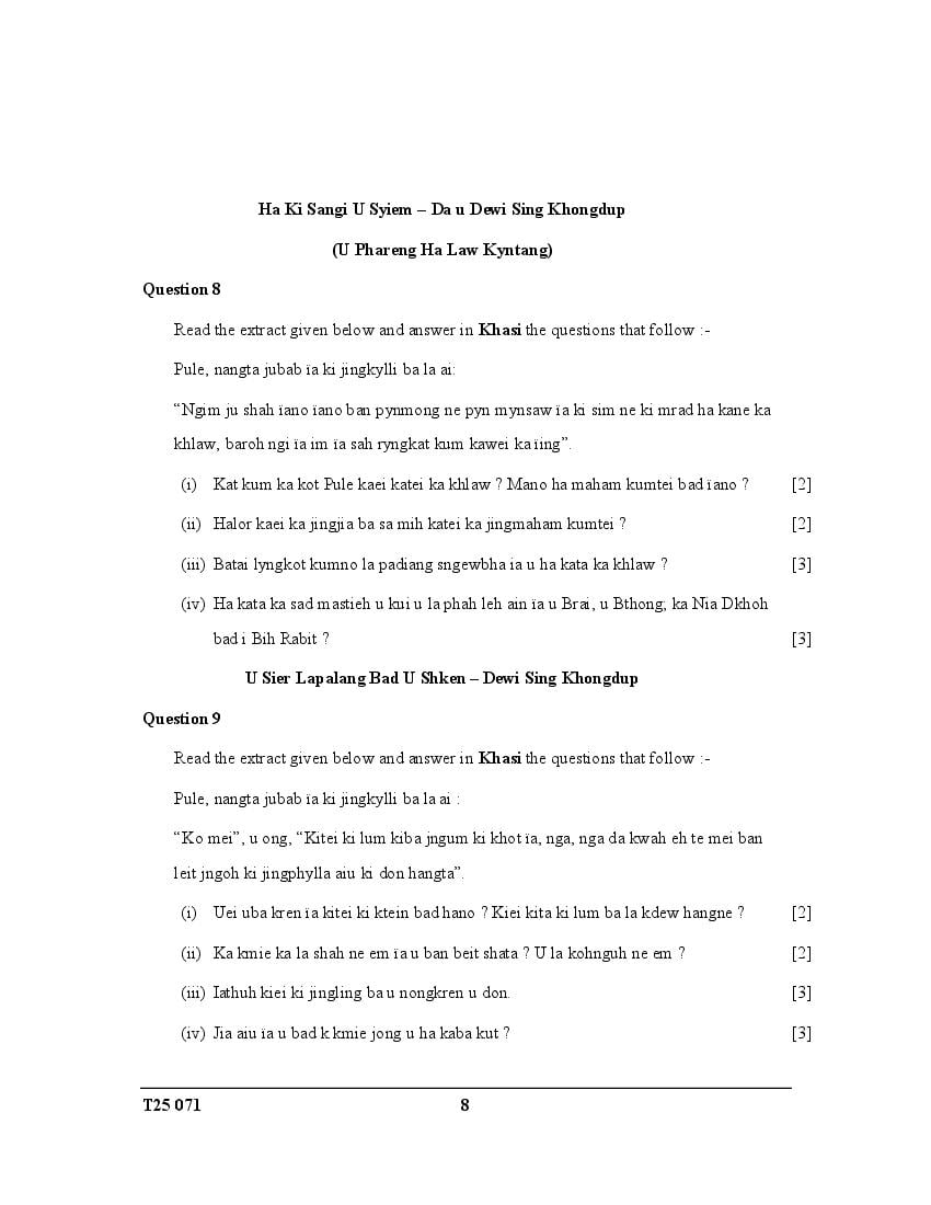 ICSE Class 10 Khasi Question Paper 2025 PDF Download Link – Click Here to Download Question Paper