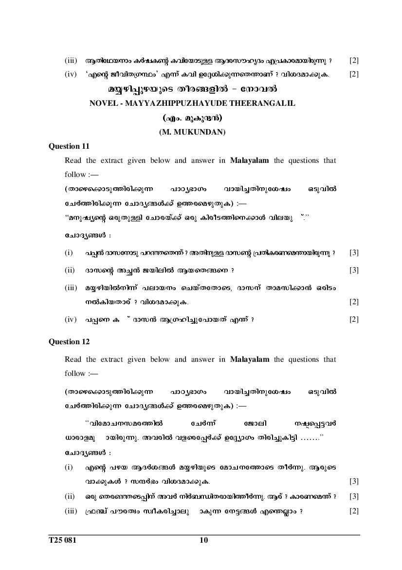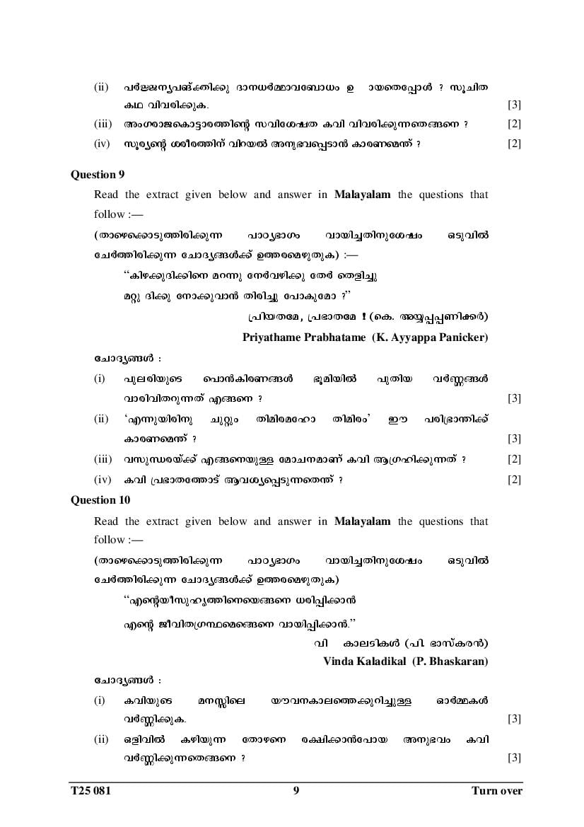 | Resources Here | CISCE Previous Year Question Papers of Class 10 Malayalam |