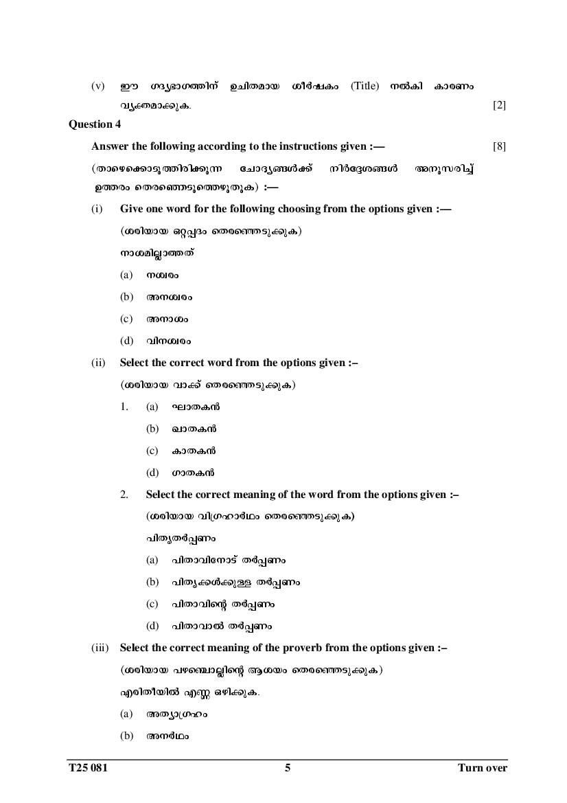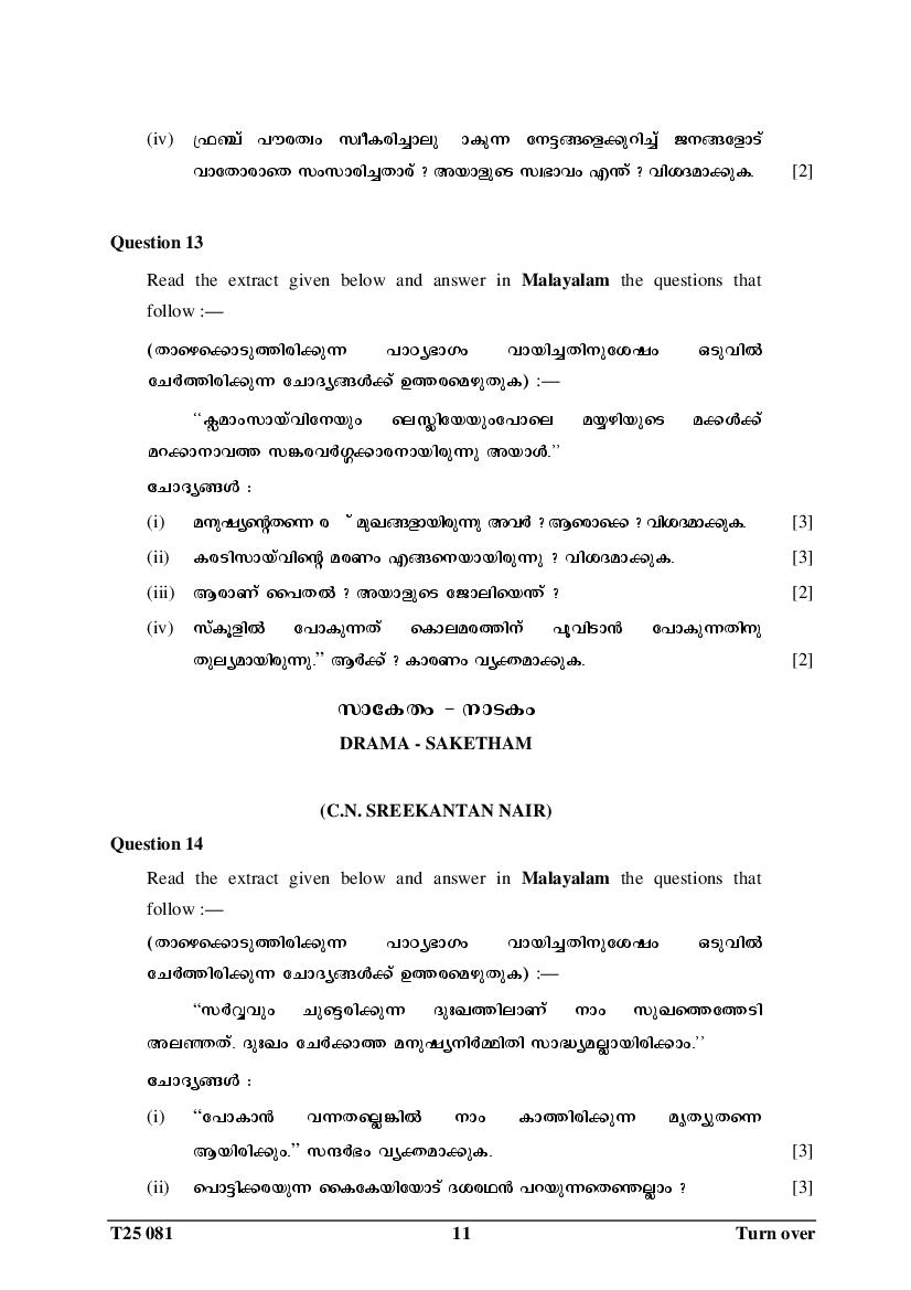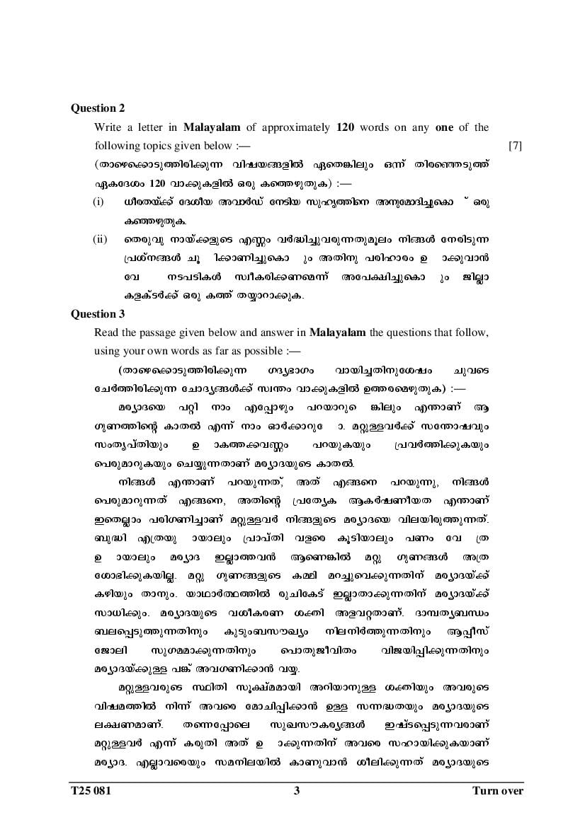 The complete Malayalam question paper of last year is as follows. However you may find more ICSE question paper pdf download link below.