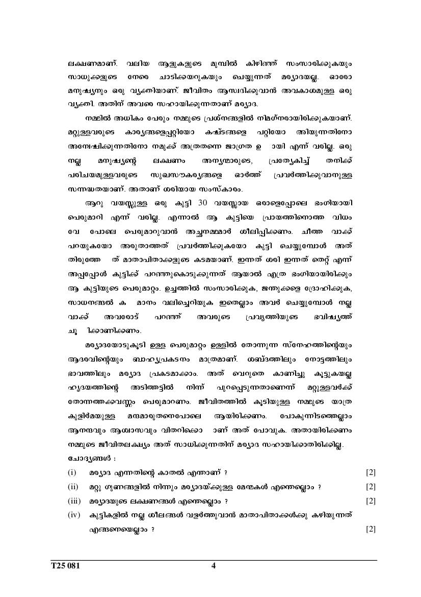 ICSE Class 10 Question Paper 2025 Malayalam View Download