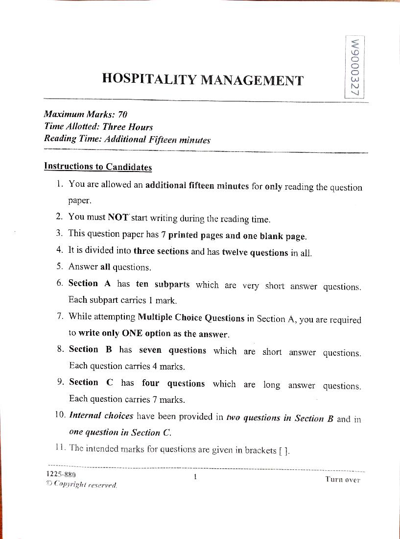 The complete Hospitality Management question paper of last year is as follows. However you may find more ISC question paper pdf download link below.