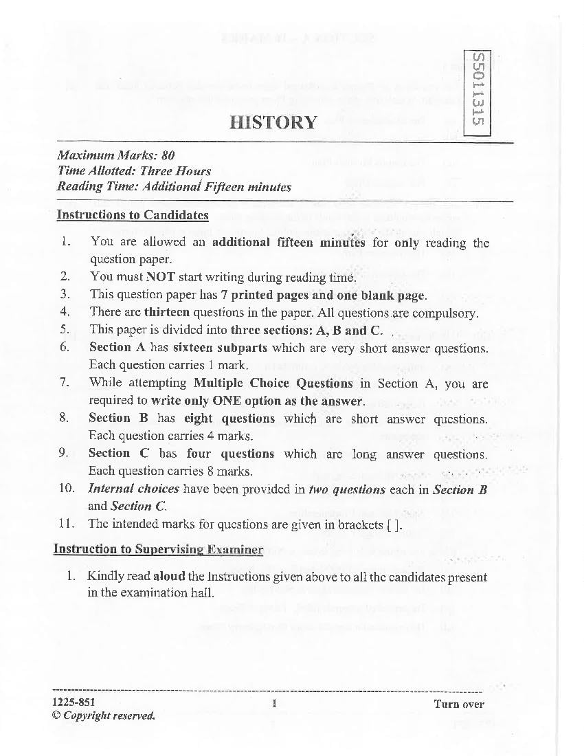 The complete History question paper of last year is as follows. However you may find more ISC question paper pdf download link below.