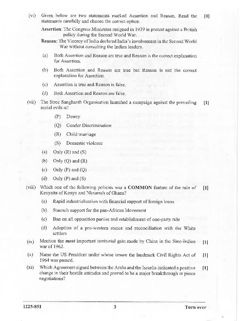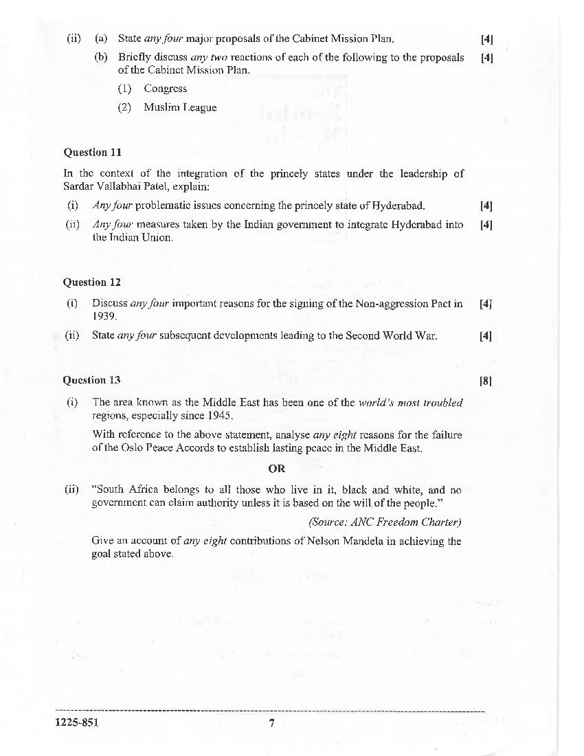 The CISCE previous year question paper of ISC Class 12 for History are as follows.