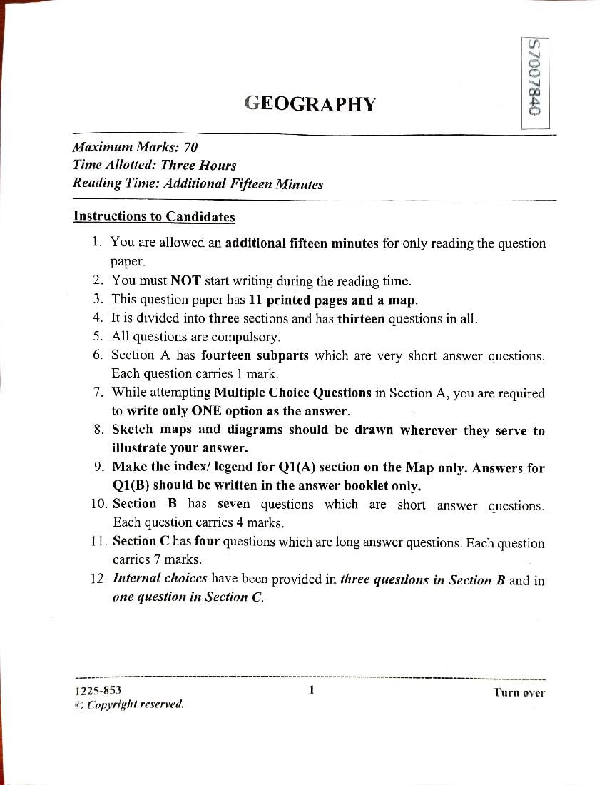 The complete Geography question paper of last year is as follows. However you may find more ISC question paper pdf download link below.
