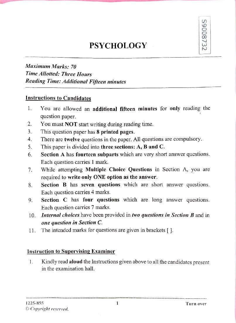 The complete Psychology question paper of last year is as follows. However you may find more ISC question paper pdf download link below.