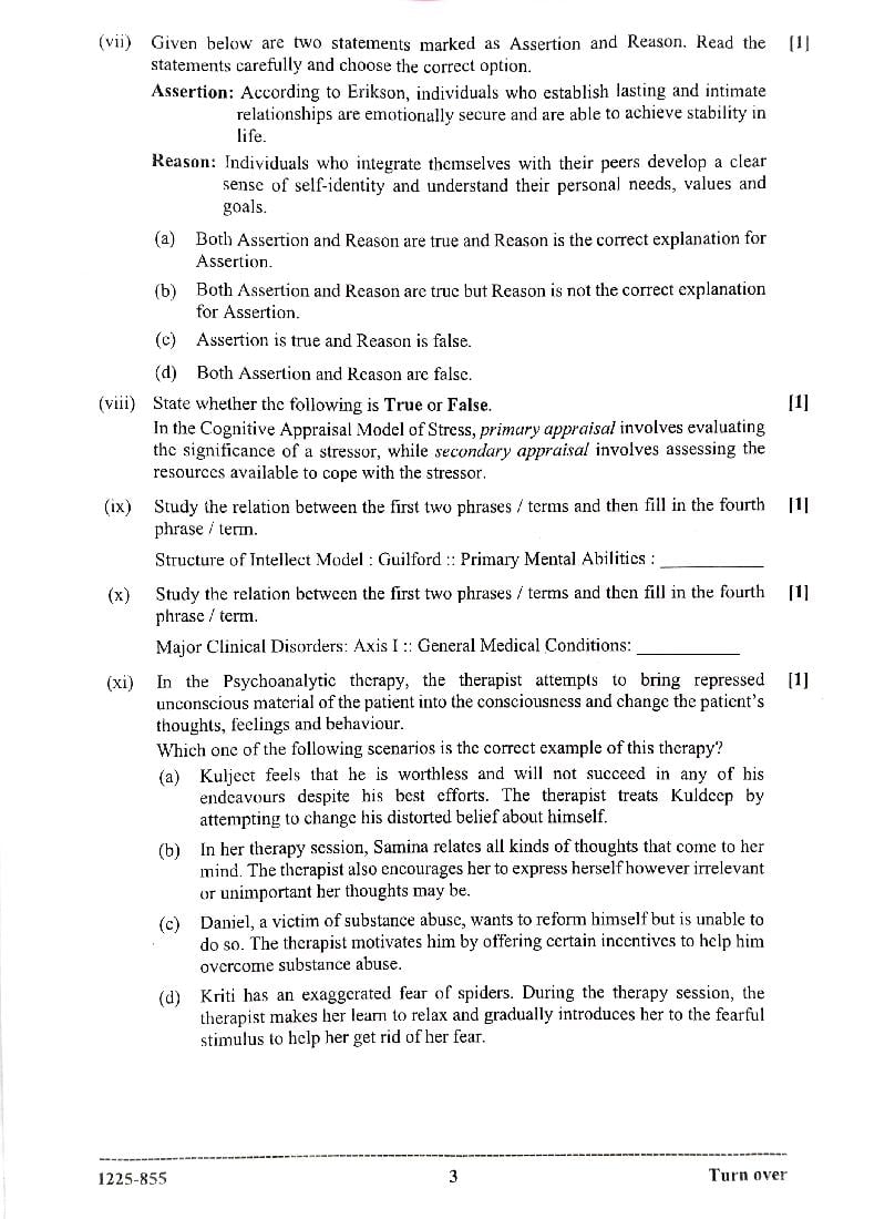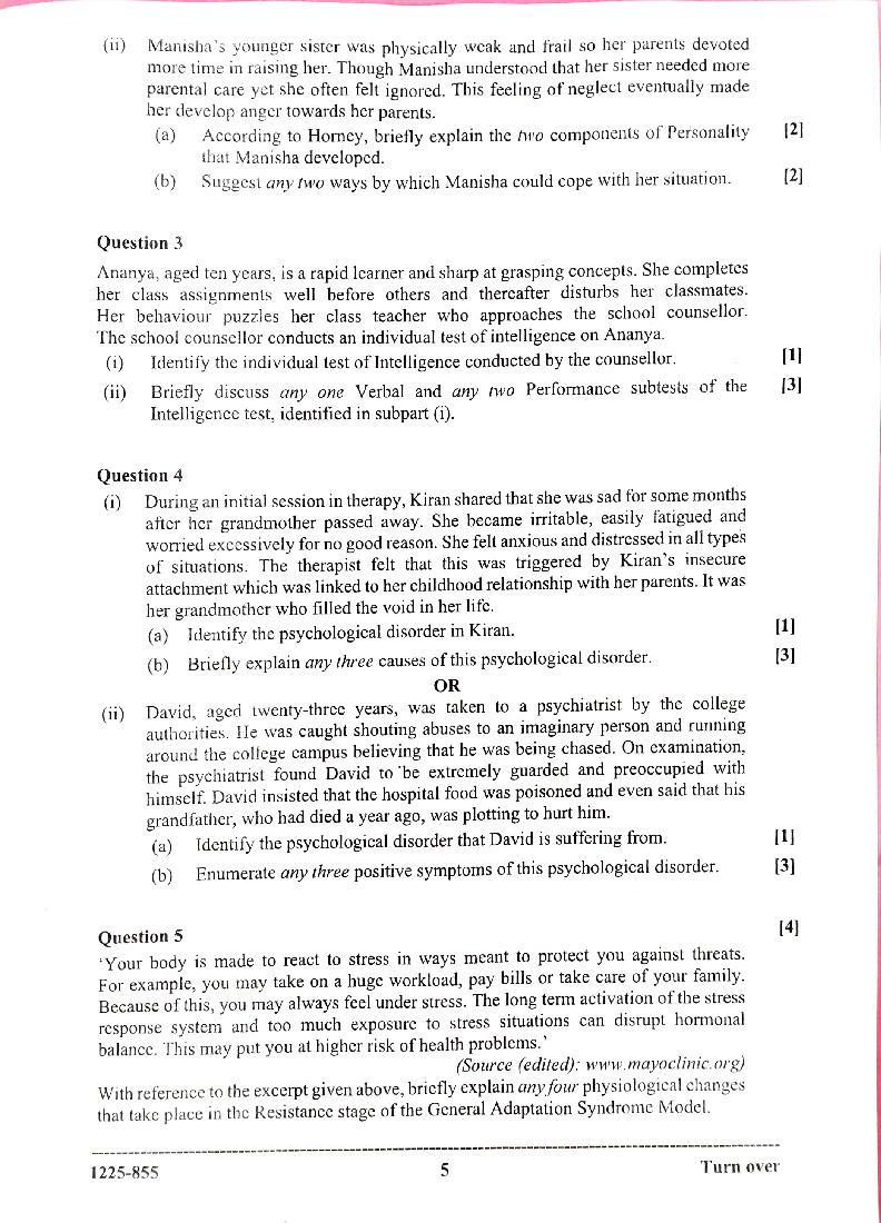 The CISCE previous year question paper of ISC Class 12 for Psychology are as follows.