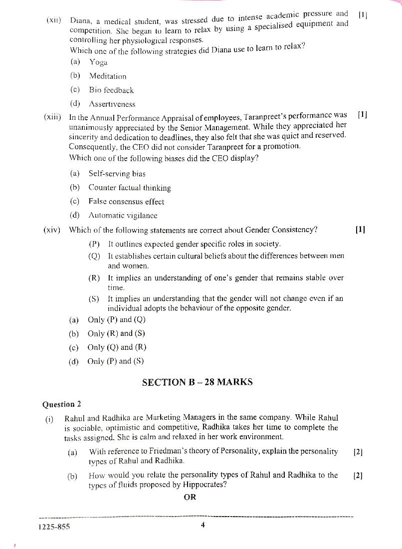 ISC Class 12 Question Paper 2025 Psychology View Download