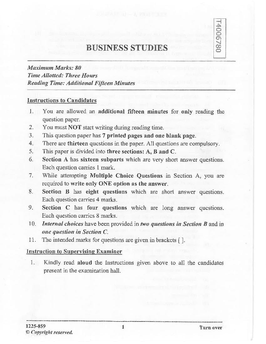 | Subject | Business Studies |