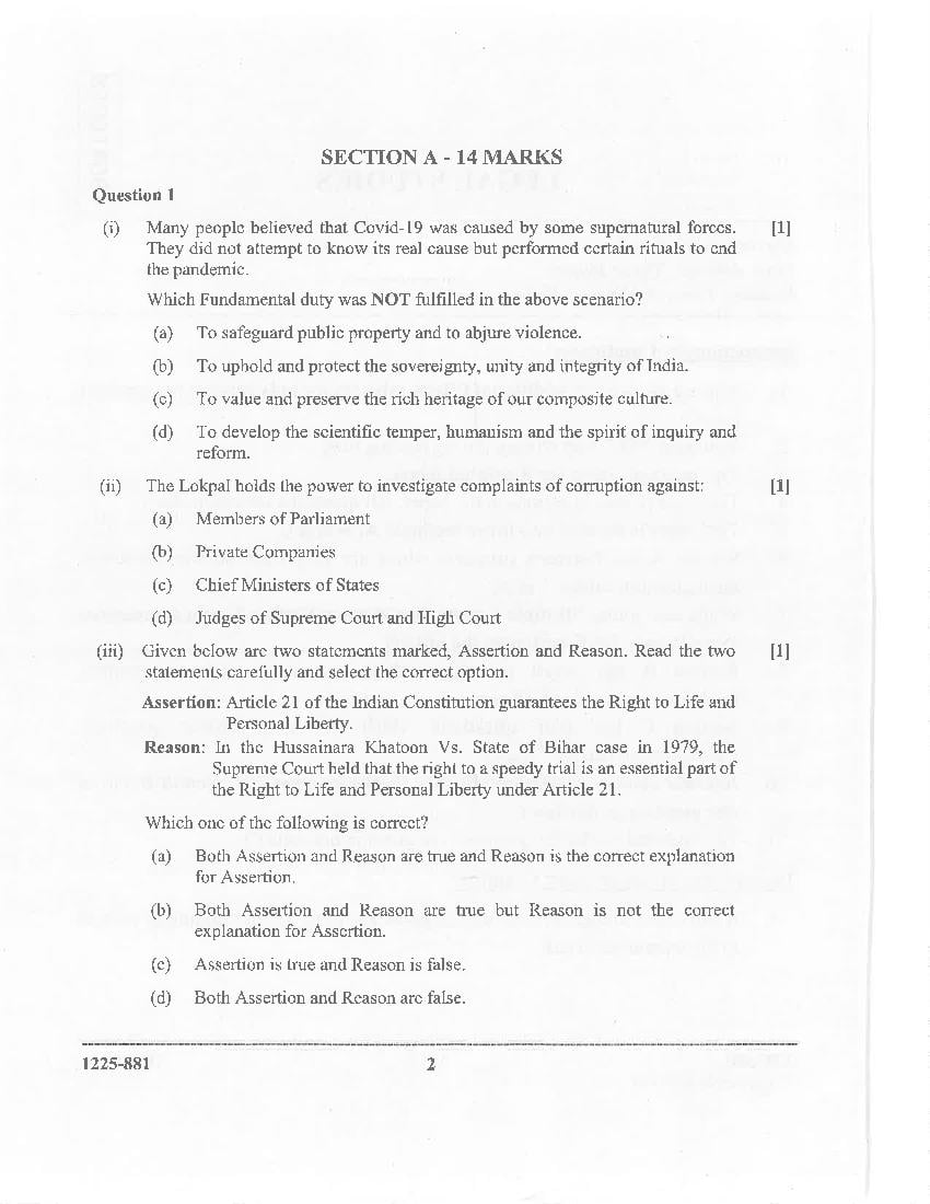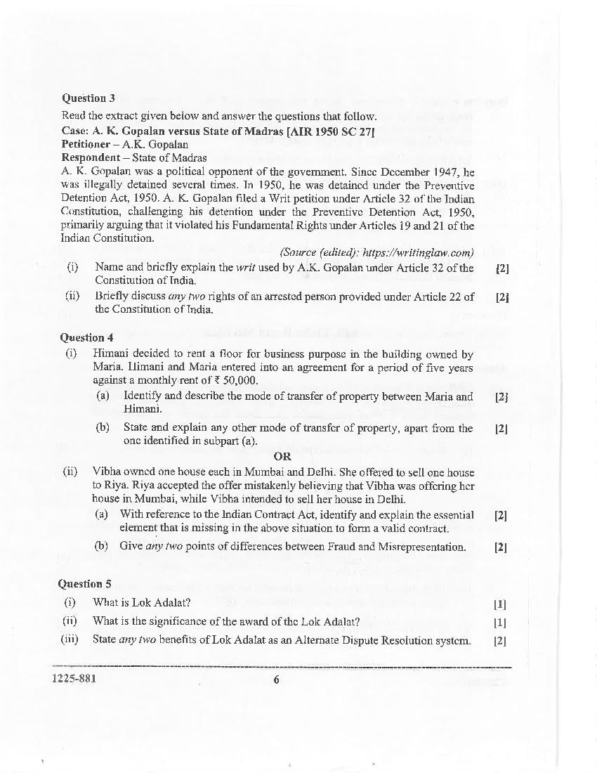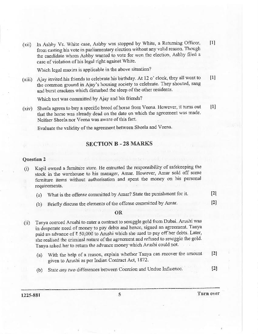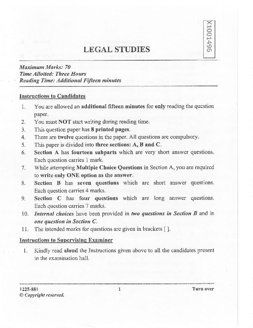 The complete Legal Studies question paper of last year is as follows. However you may find more ISC question paper pdf download link below.