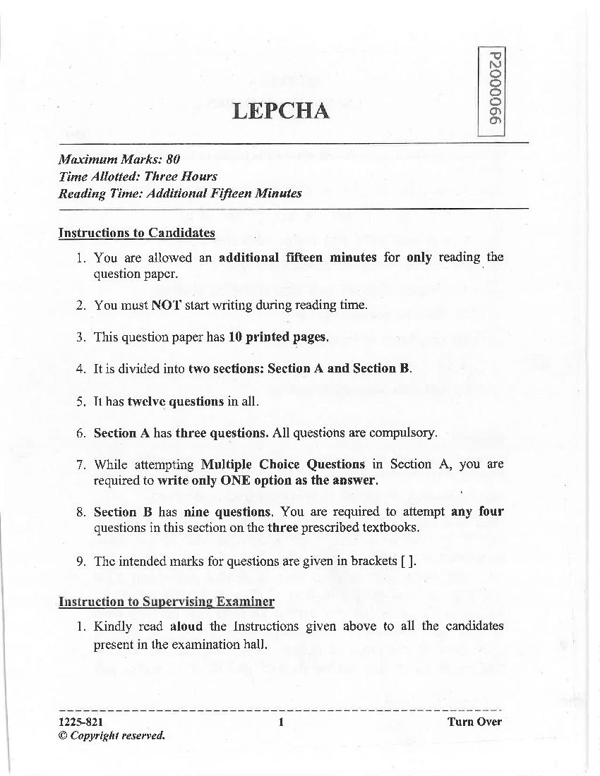 | Resources Here | CISCE Previous Year Question Papers of Class 12 Lepcha |