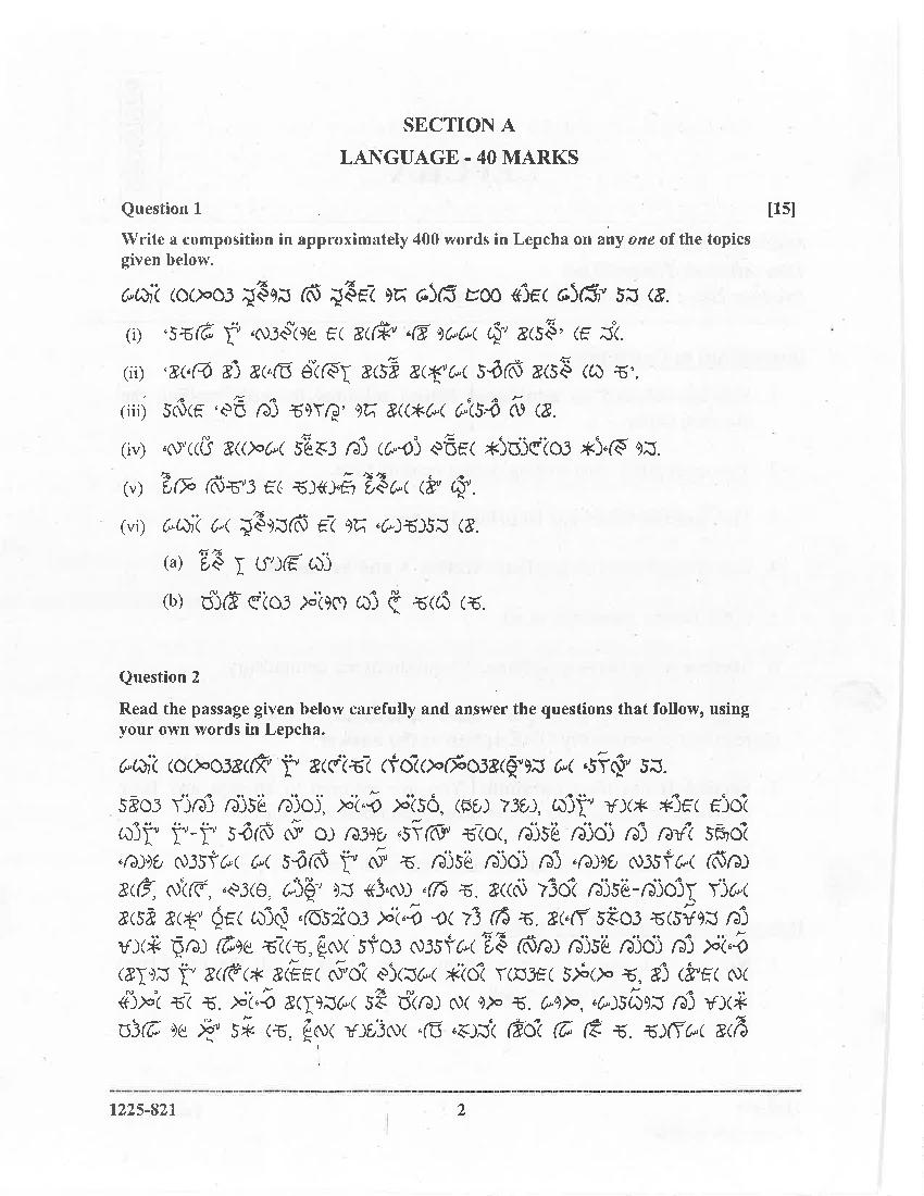 The CISCE previous year question paper of ISC Class 12 for Lepcha are as follows.