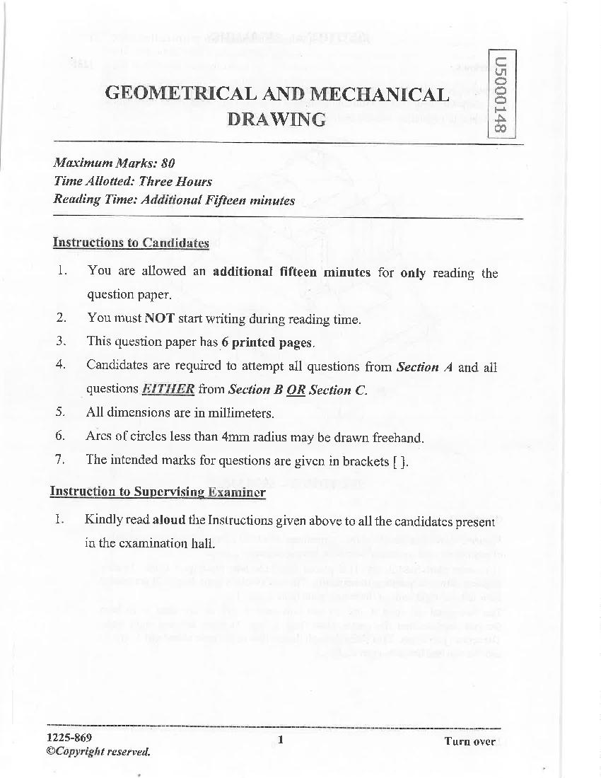 The complete Geometrical & Mechanical Drawing question paper of last year is as follows. However you may find more ISC question paper pdf download link below.
