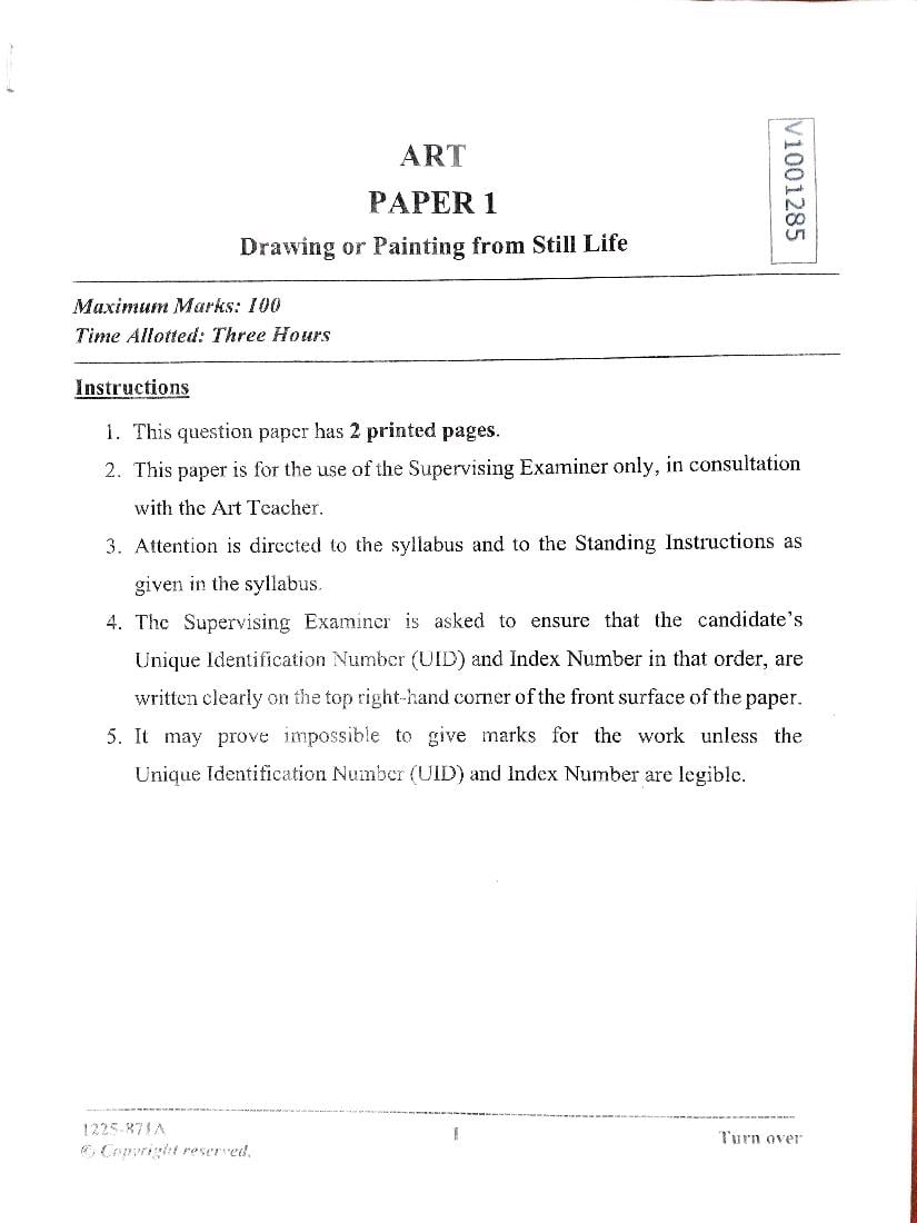 The complete Art Paper 1 – Drawing Or Painting From Still Life question paper of last year is as follows. However you may find more ISC question paper pdf download link below.