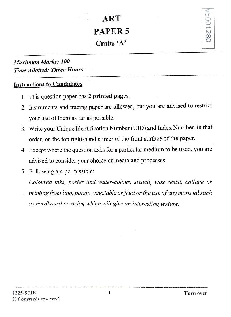 The complete Art Paper 5 – Crafts question paper of last year is as follows. However you may find more ISC question paper pdf download link below.