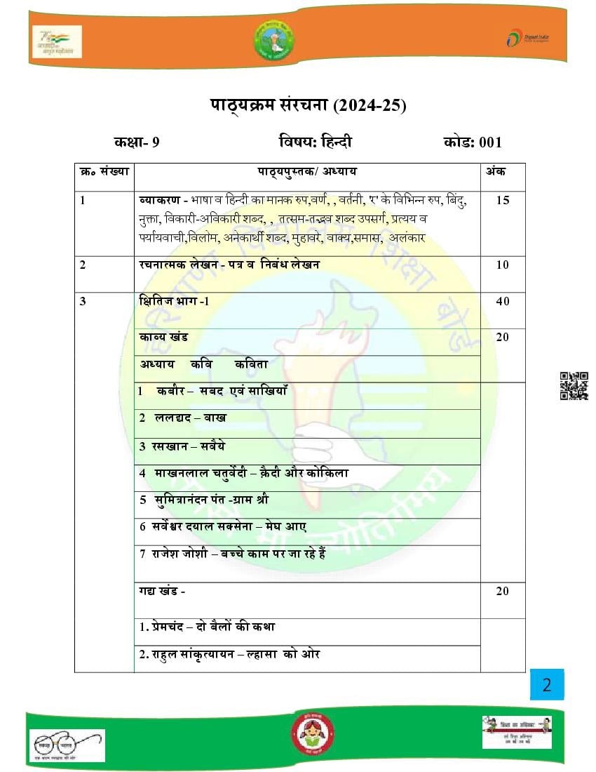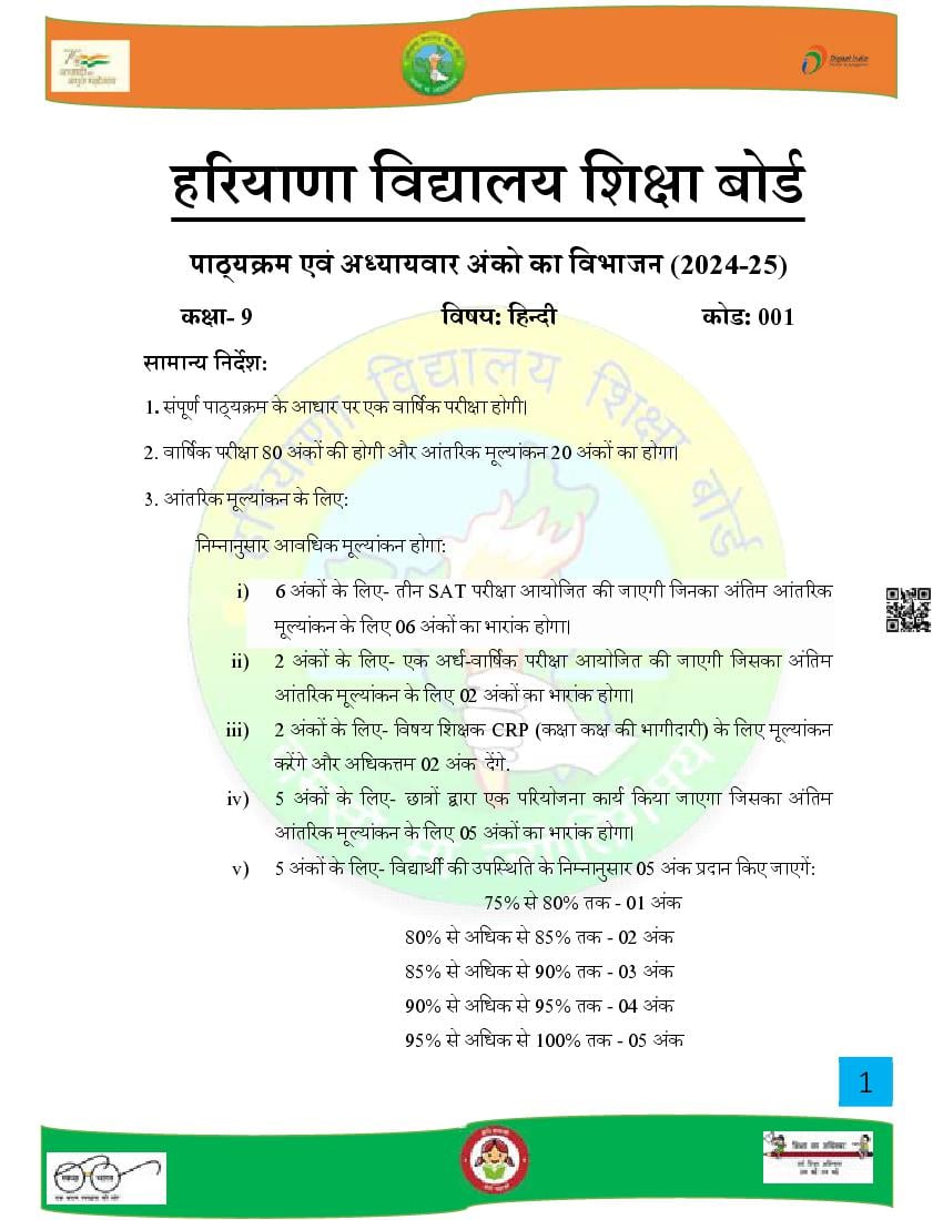 HBSE Class 9 Syllabus 2025 Hindi View Download