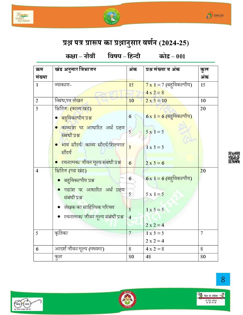 The complete class 9 Hindi curriculum along with blueprint is as follows.