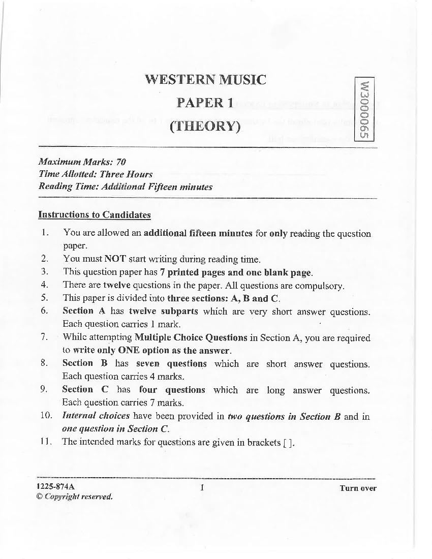 The complete Western Music question paper of last year is as follows. However you may find more ISC question paper pdf download link below.