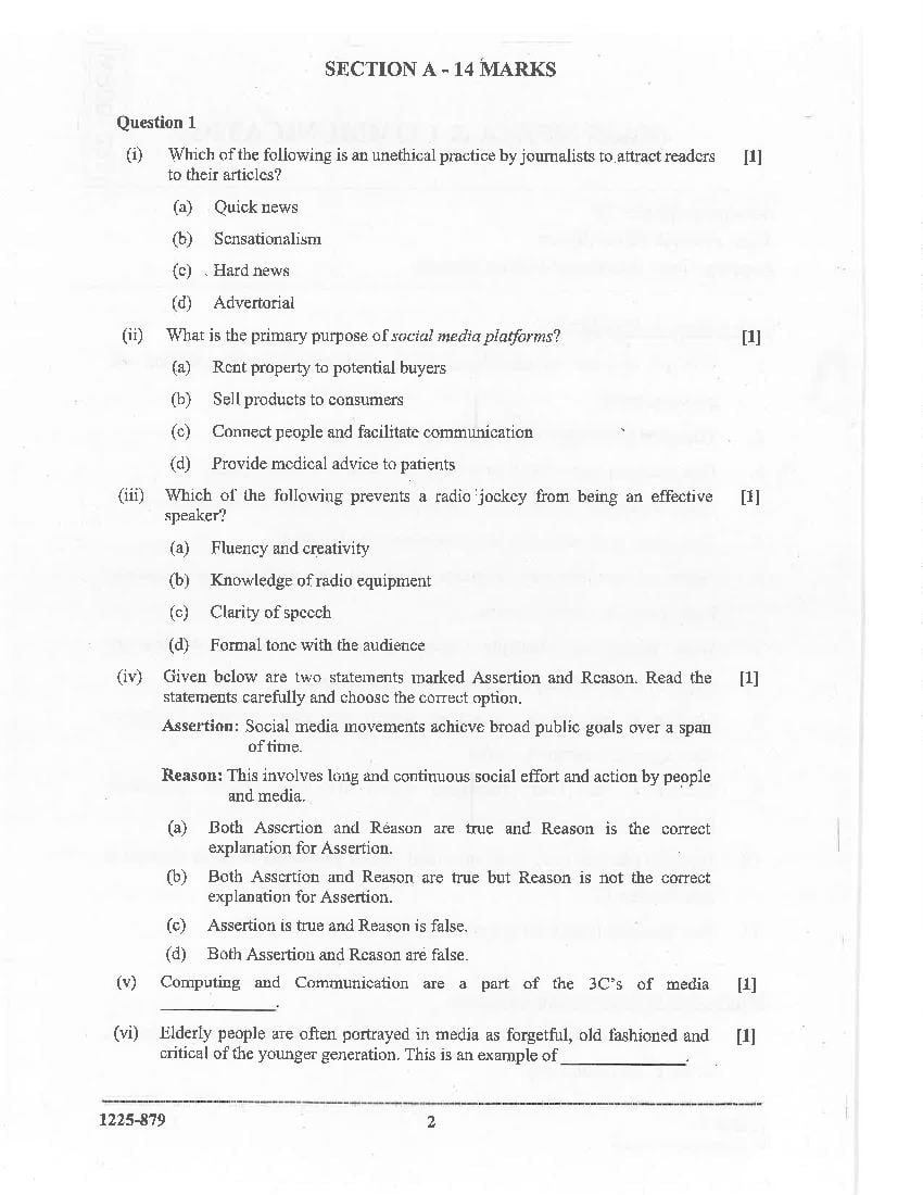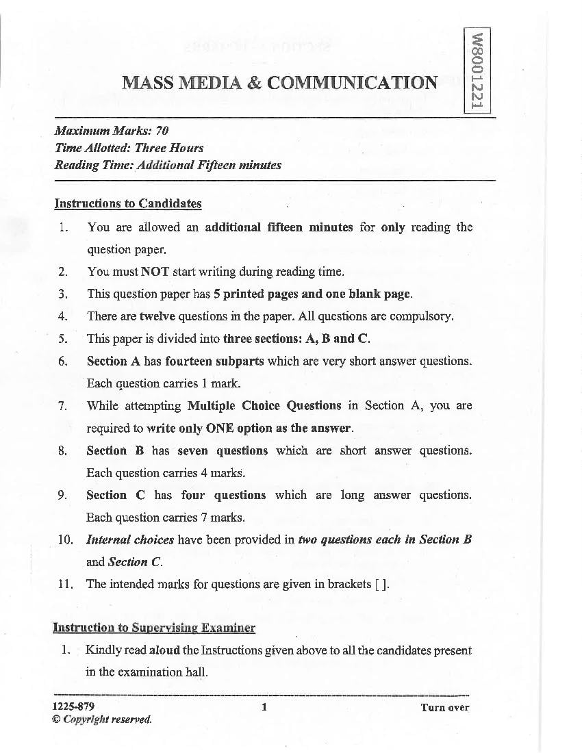 The complete Mass Media & Communication question paper of last year is as follows. However you may find more ISC question paper pdf download link below.